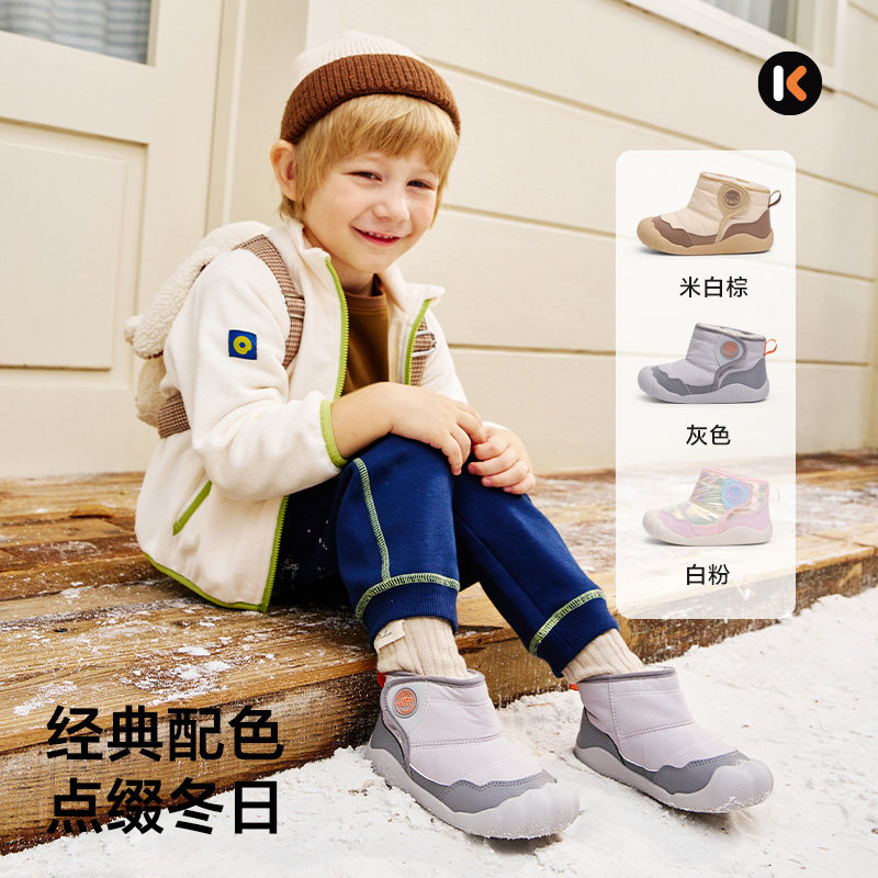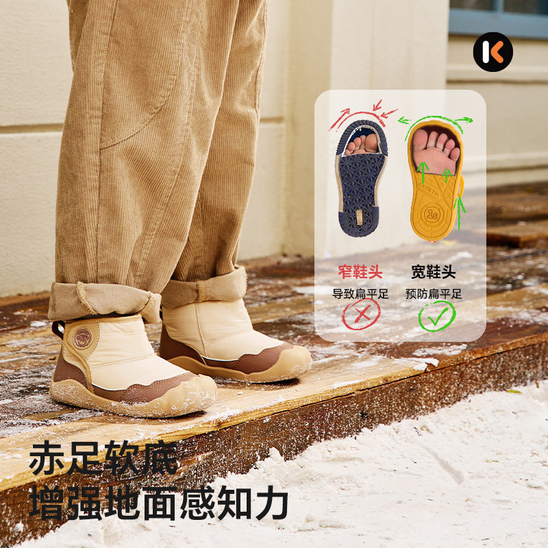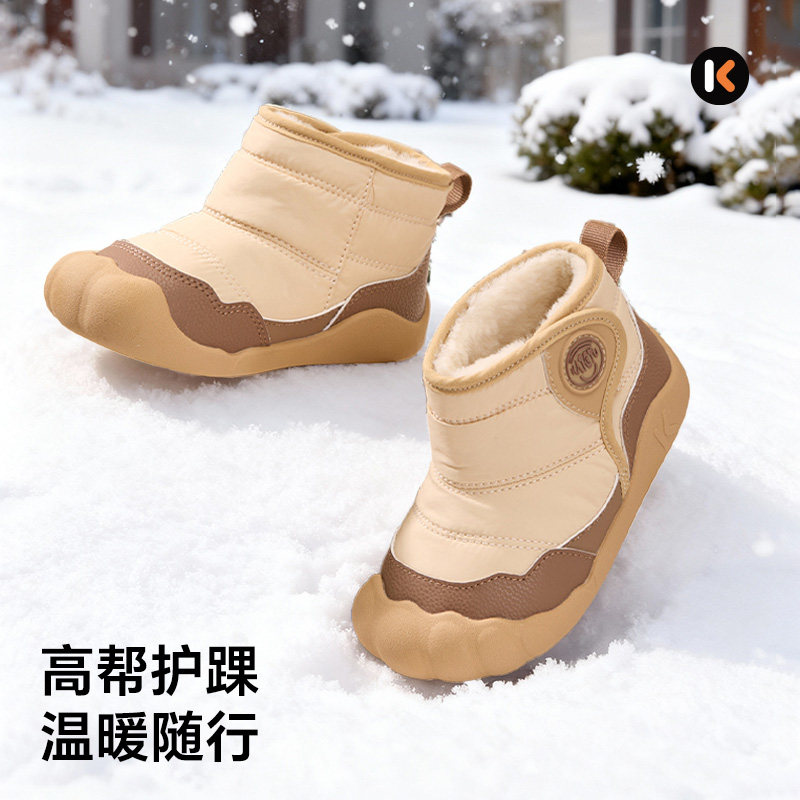 卡特兔宝宝学步鞋2025冬季赤足训练鞋高帮防水防滑保暖儿童棉鞋