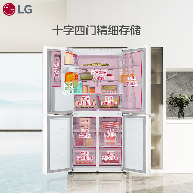 以旧换新补贴LG嵌入制冰机冰箱大容量506L十字四门家用饮水机 62D