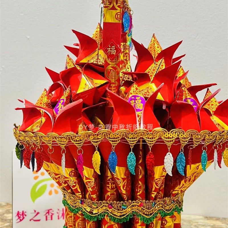新款中秋节庆日石榴花篮材料包配胶条 需自折自粘有教程