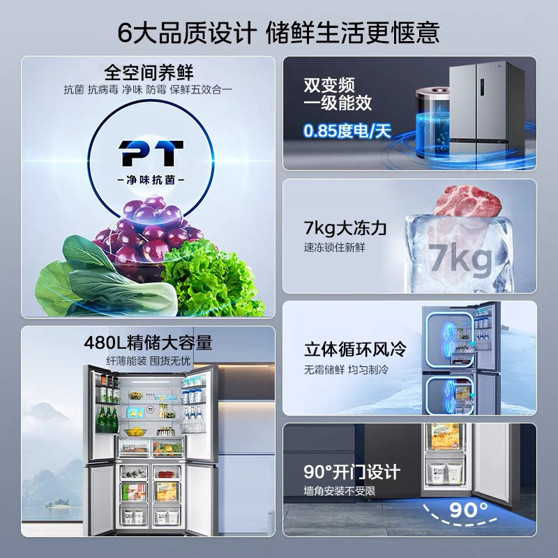 政府换新补贴海尔统帅469L十字对开四门一级风冷大容量家用电冰箱