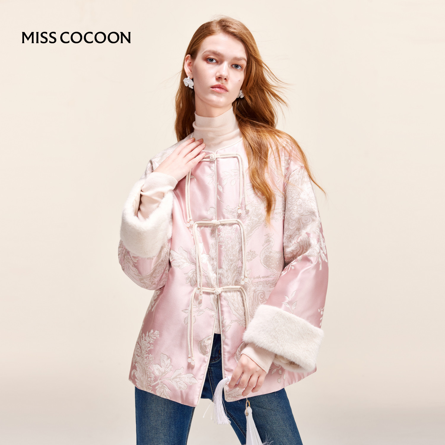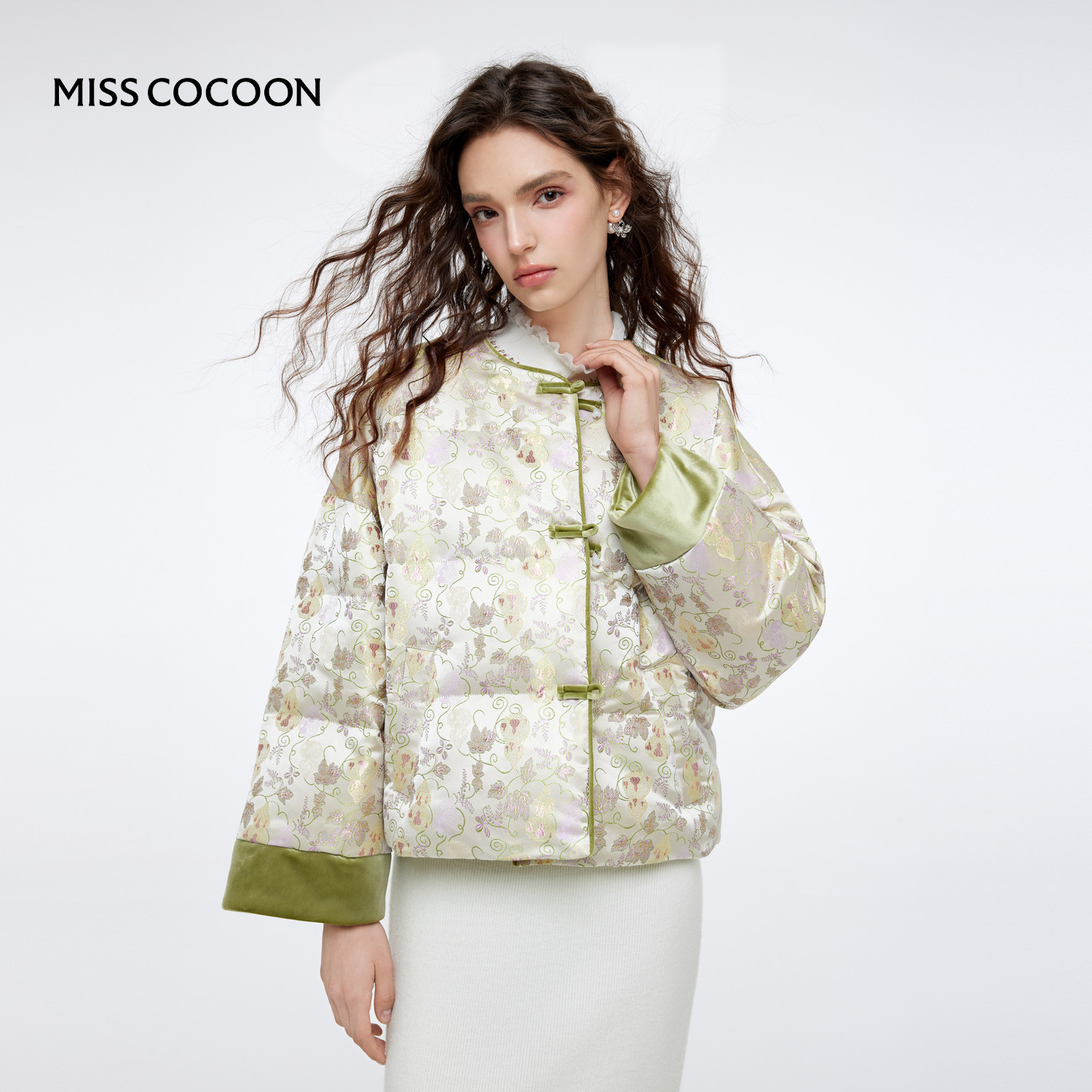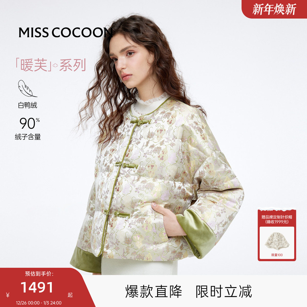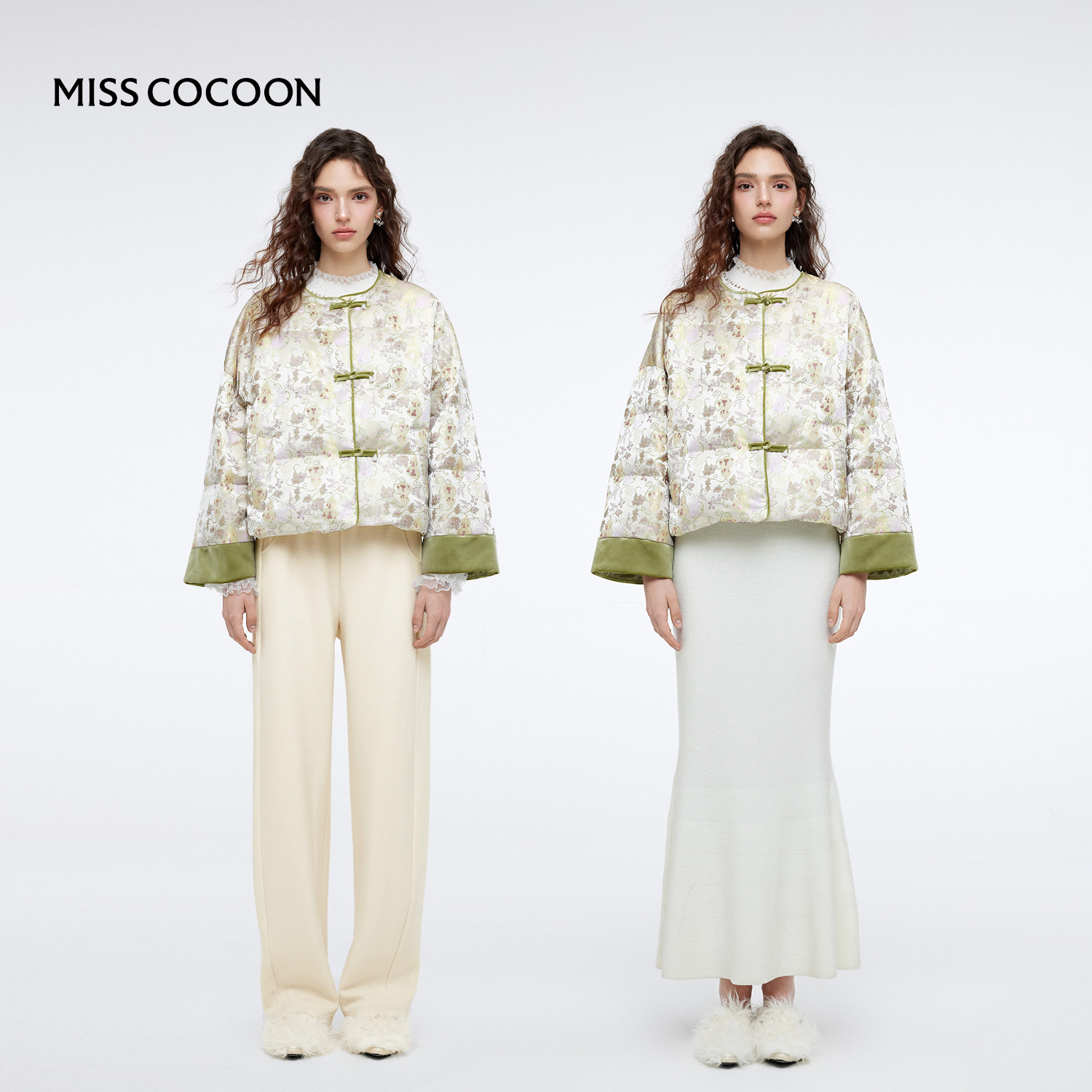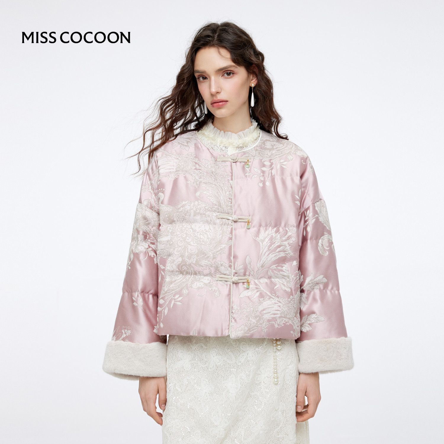 MISSCOCOON可可尼提花外套女2025冬新款新中式短款圆领鸭绒羽绒服