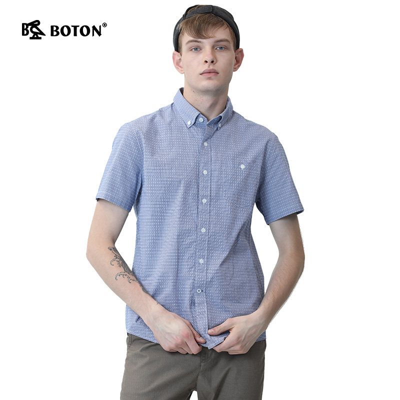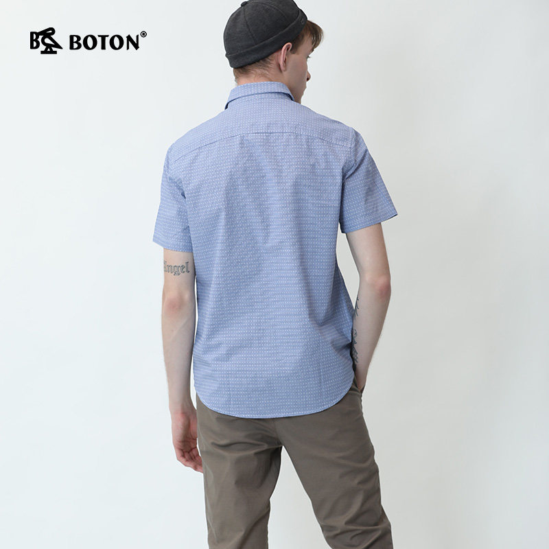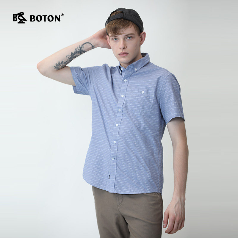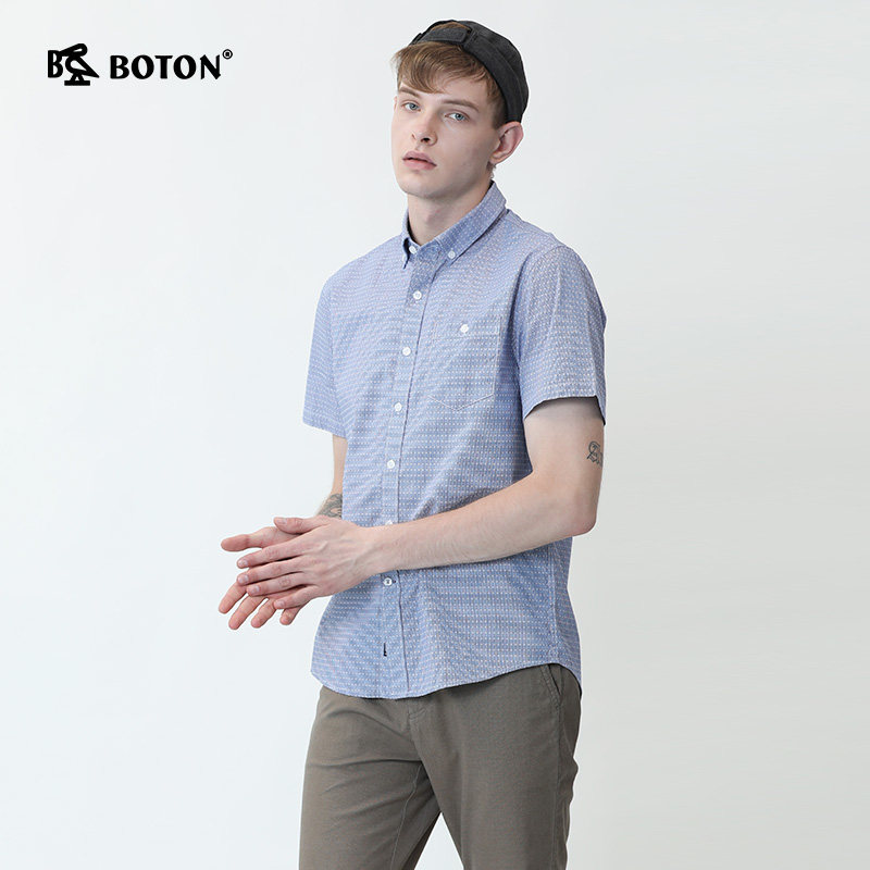 Boton/波顿夏季休闲短袖衬衫男士潮流条纹半袖职业装商务休闲上衣