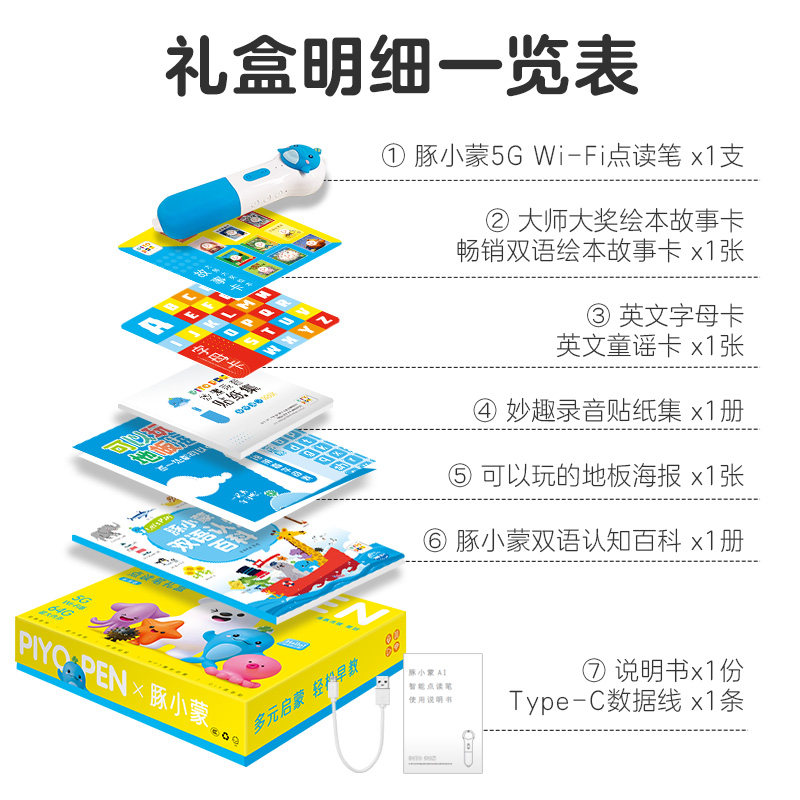 【买1赠4】PIYOPEN豚小蒙AI智能点读笔5GWIFI升级旗舰版礼盒64G婴幼儿早教学习机儿童益智力早教机宝宝专用
