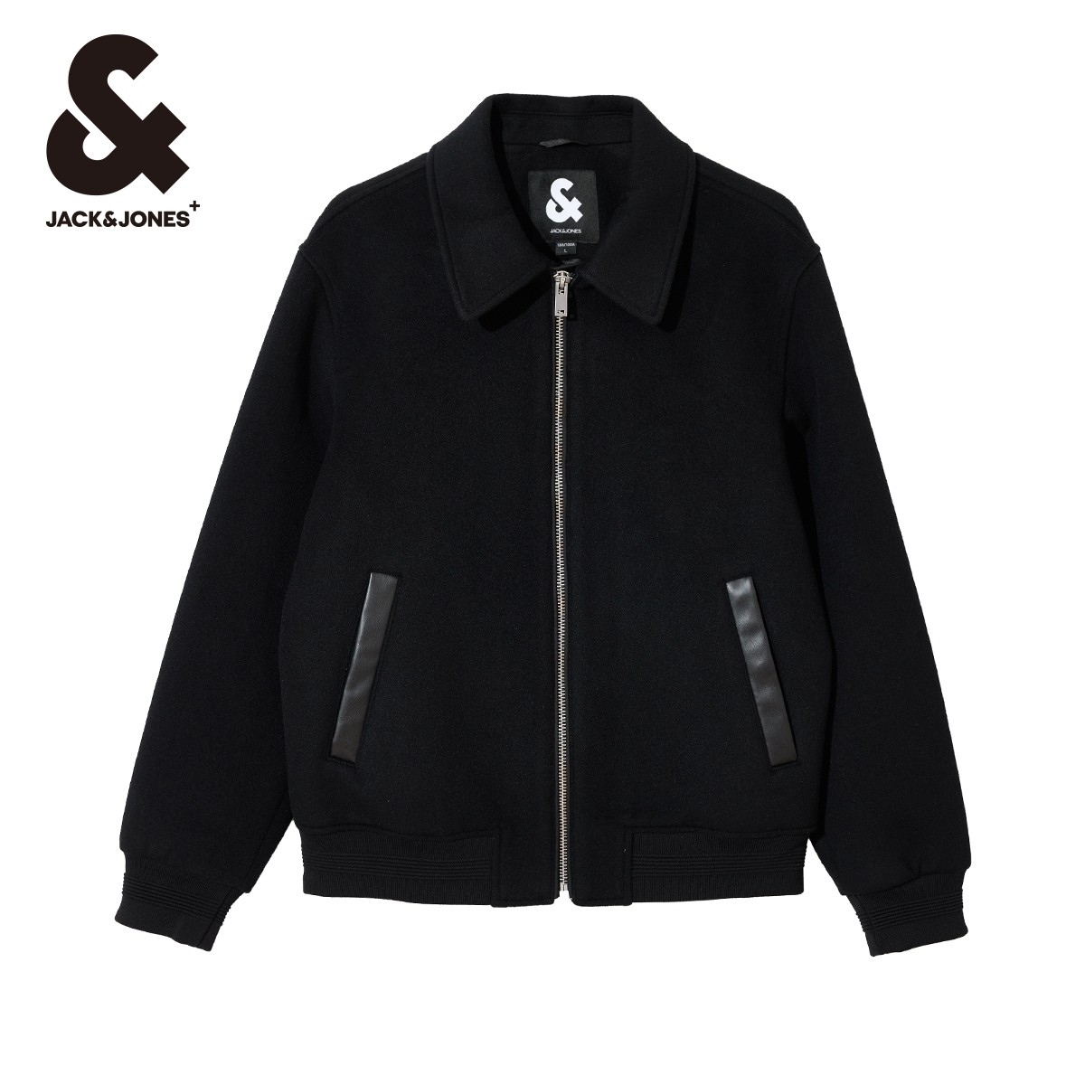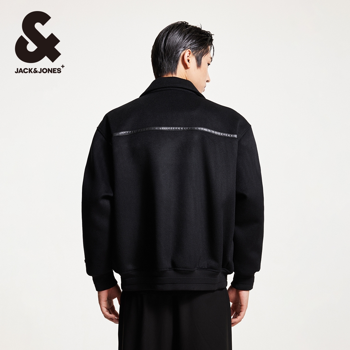 杰克琼斯男装秋冬新款后背pu皮装饰时尚潮流百搭舒适尖领毛呢大衣