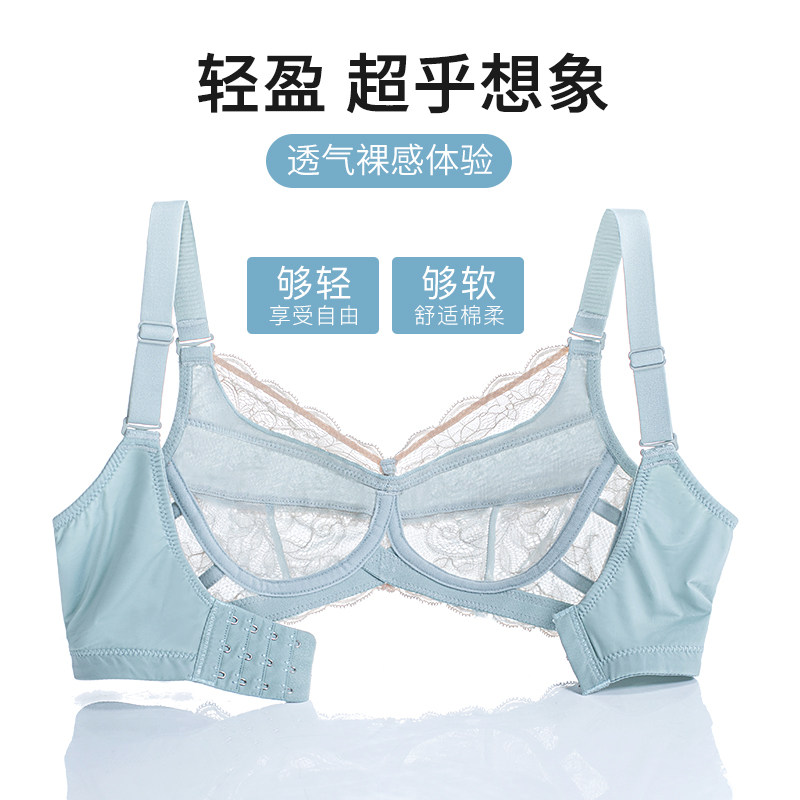 蝴蝶日记超薄款内衣女大胸显小夏季bra无钢圈文胸罩收副乳防下垂