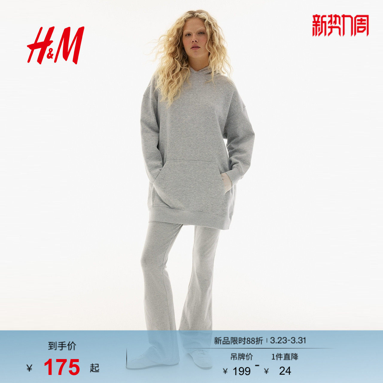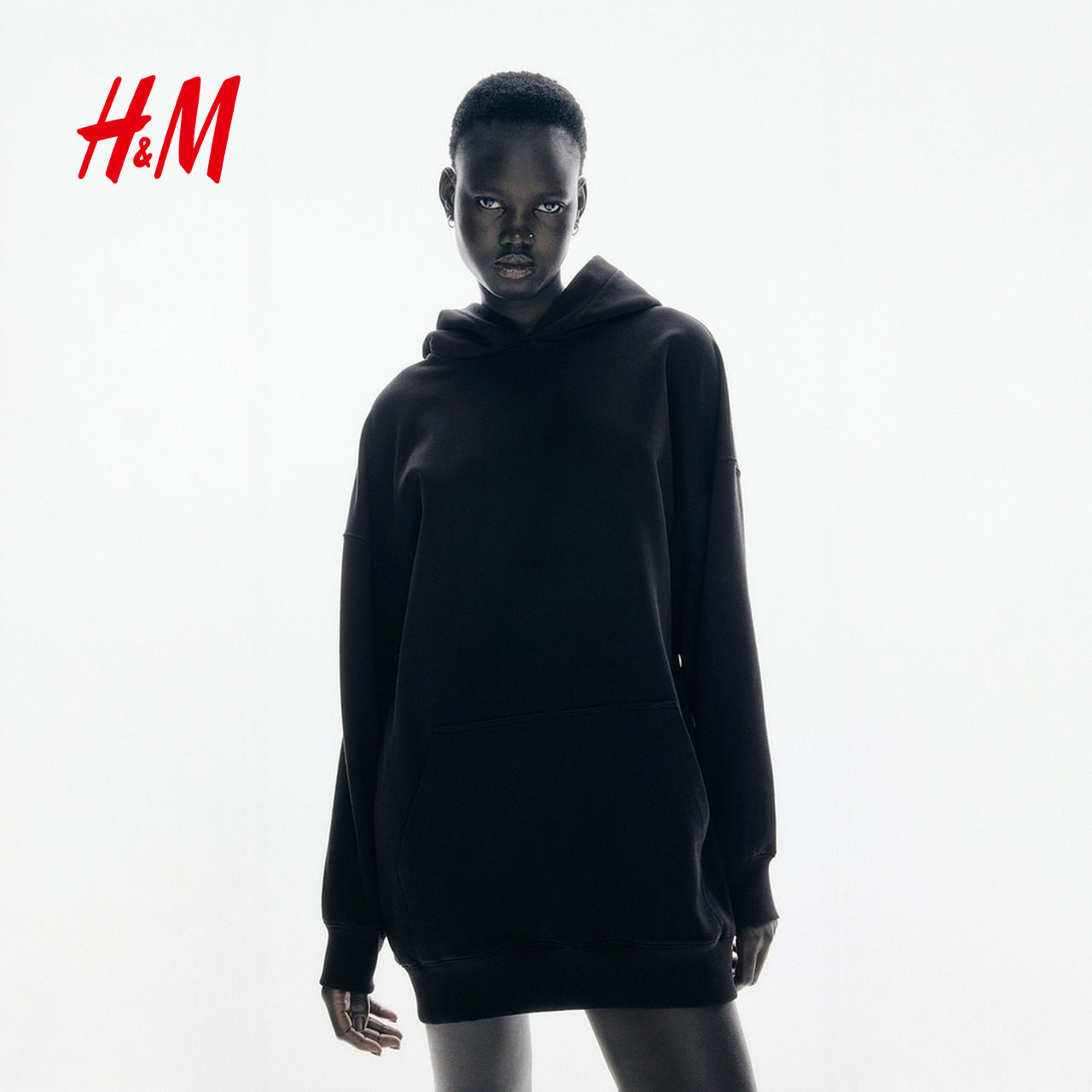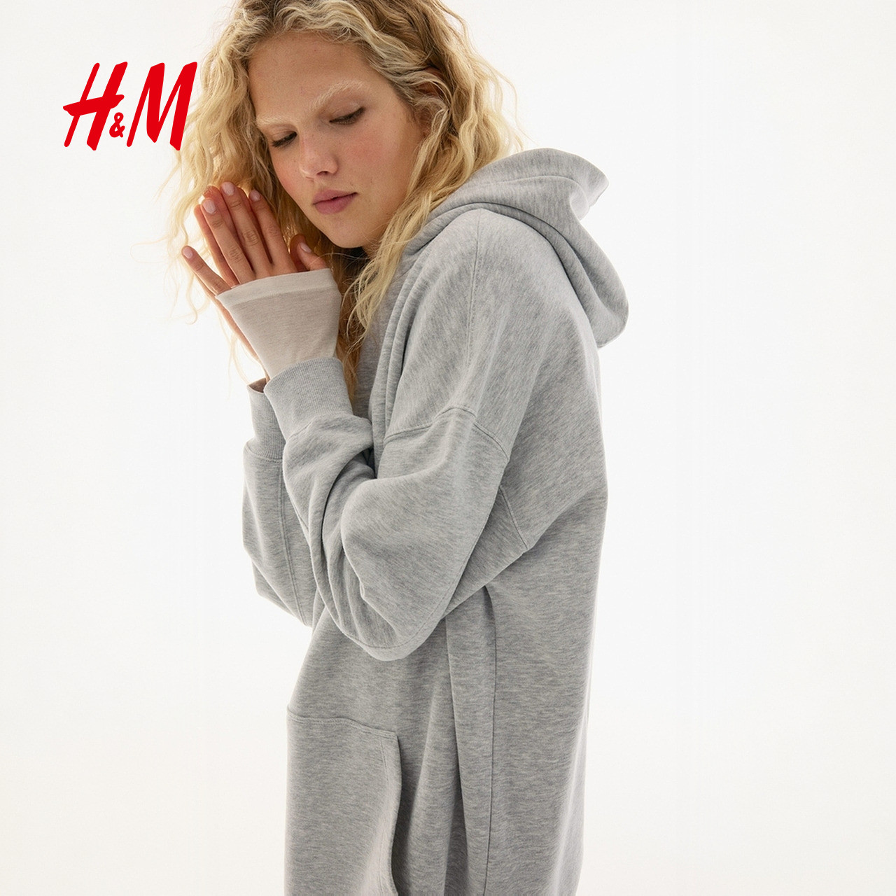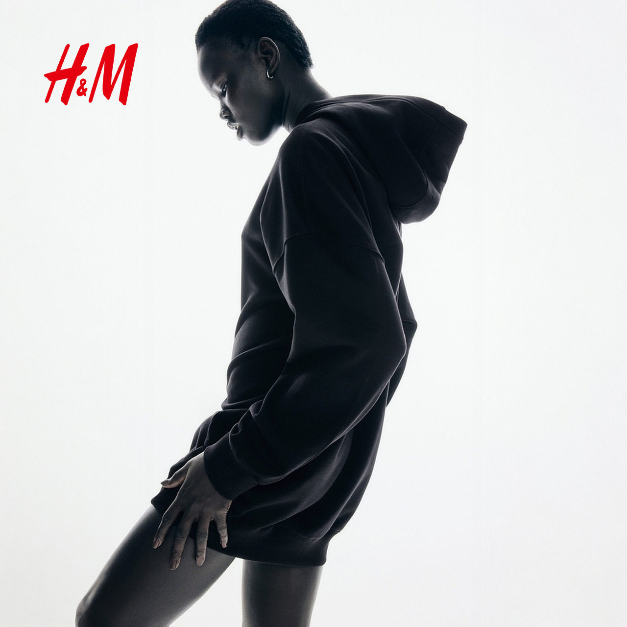 HM女装连衣裙春季松弛慢人风内搭保暖大廓形连帽休闲裙子1261586