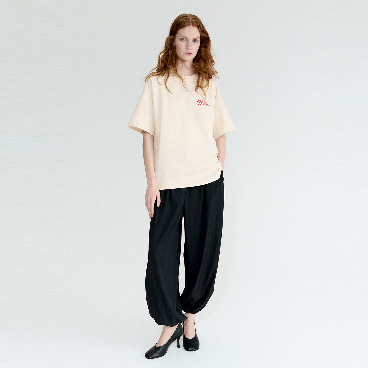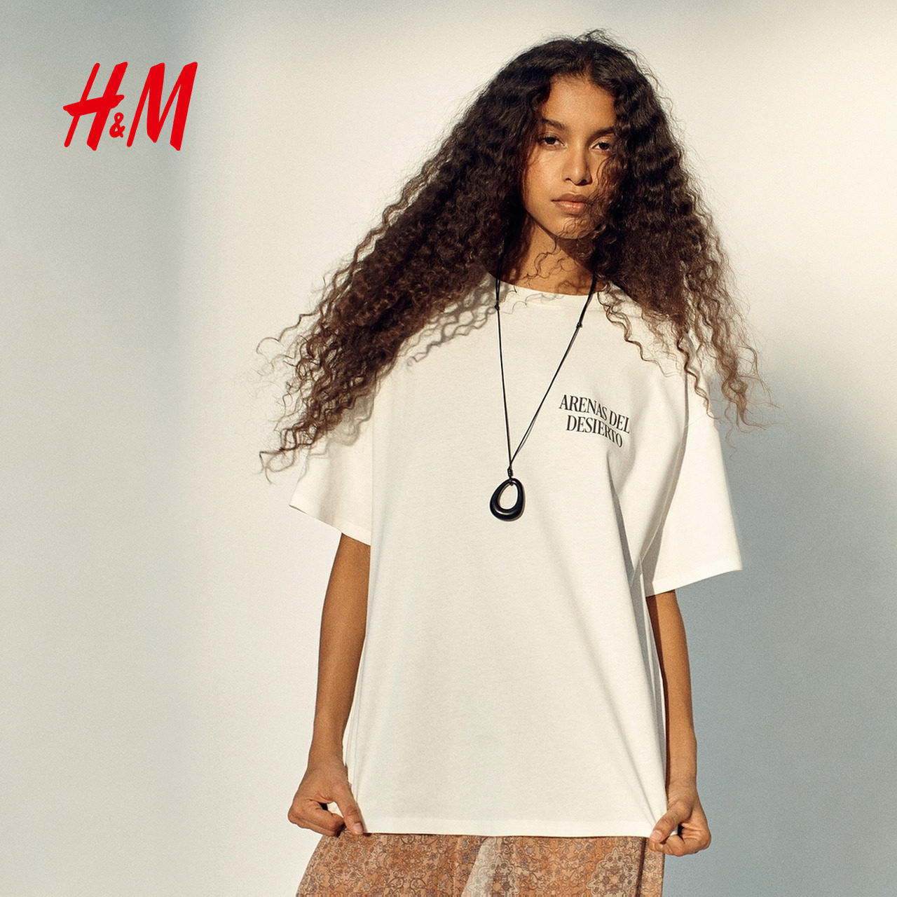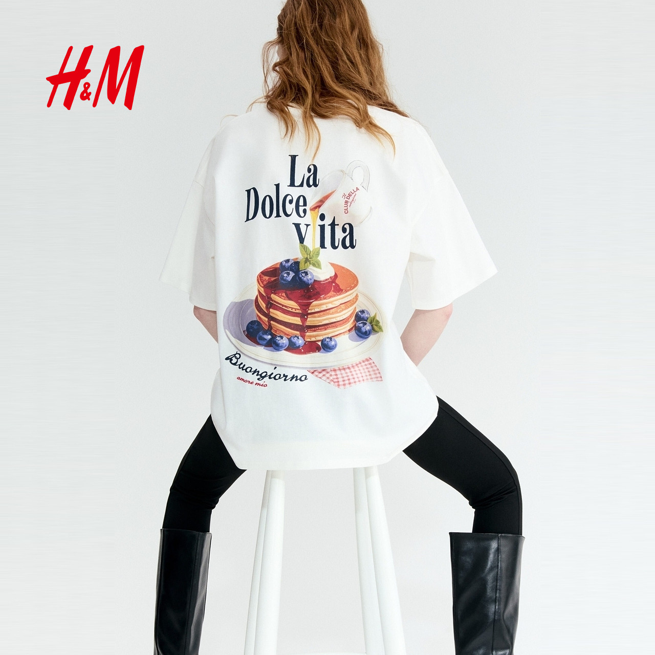 HM女装T恤2026春季新款圆领宽松印花大廓形美式短袖上衣1314592