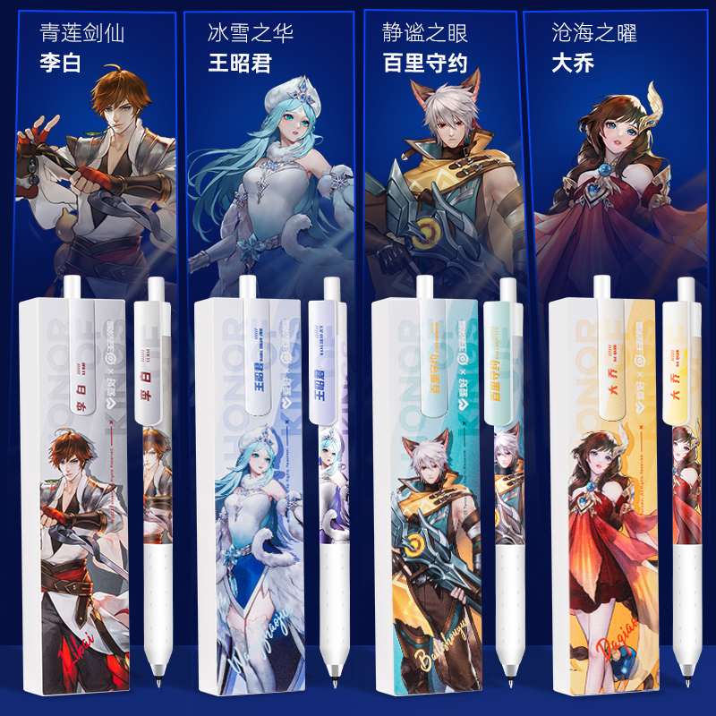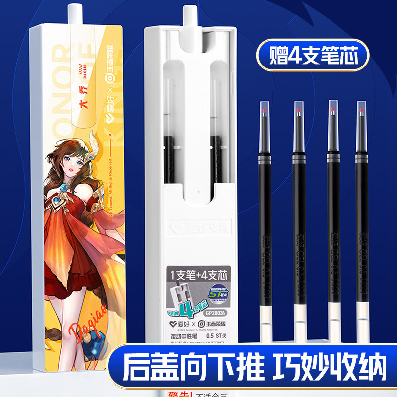 爱好王者荣耀联名按动中性笔st笔尖黑色签字笔盒子笔小学生三年级考试专用水笔碳素笔拼图笔刷题限定笔