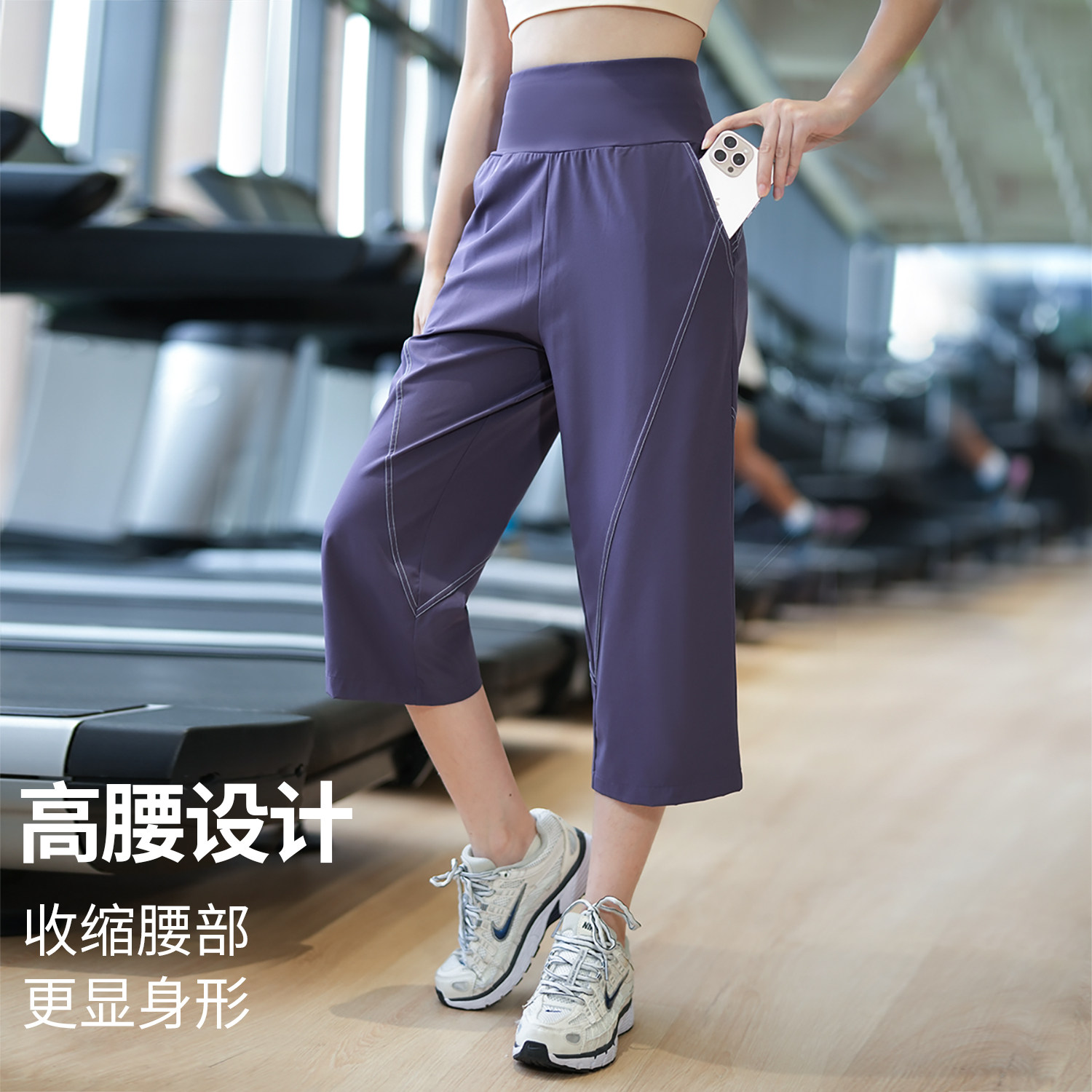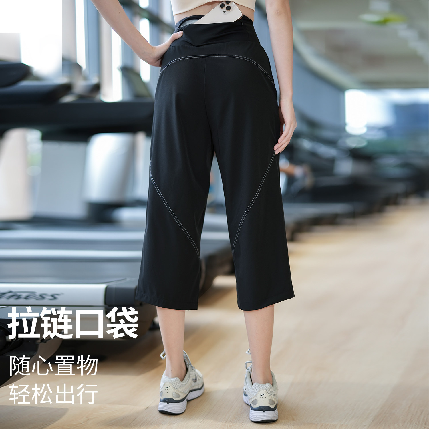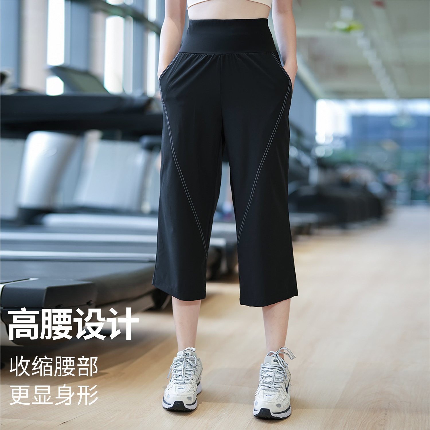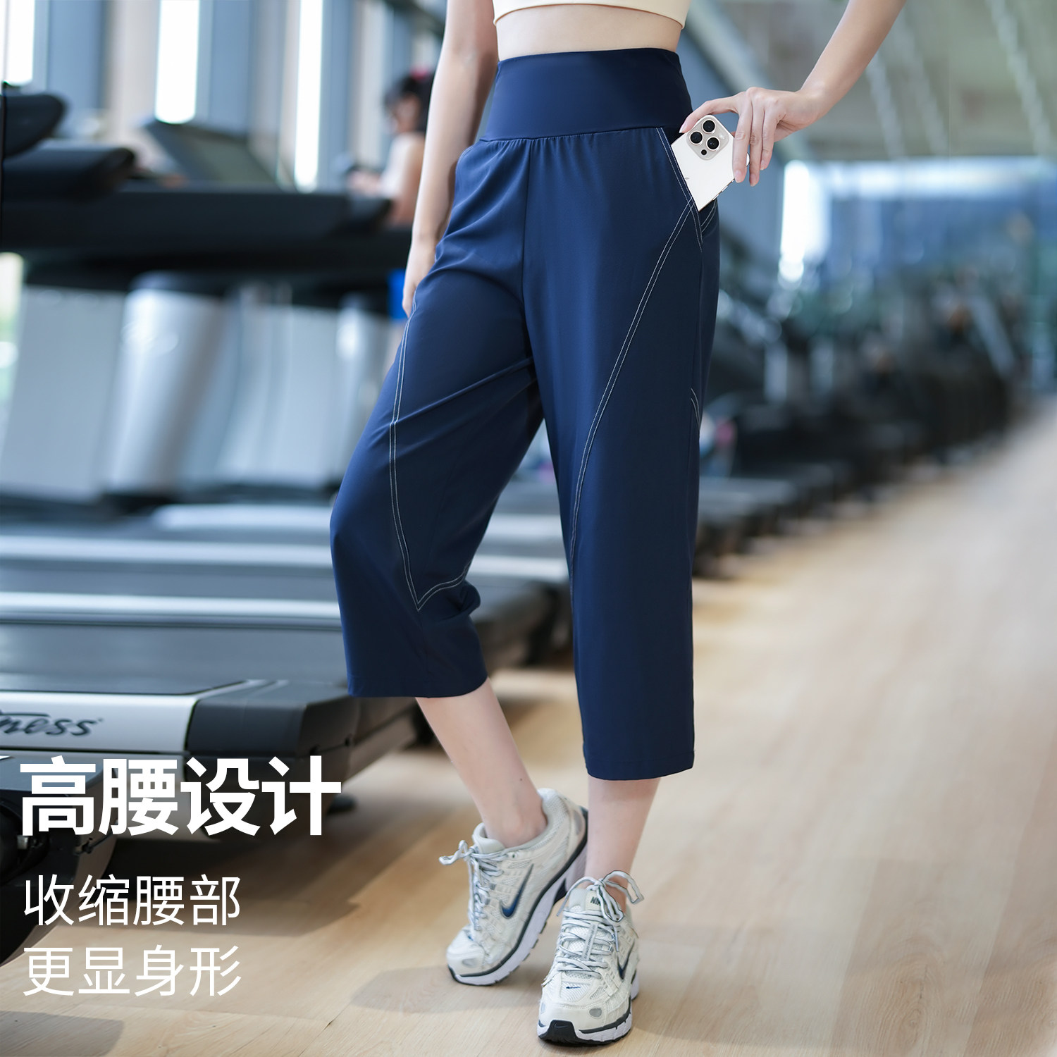 后口袋放手机健身裤女夏季款宽松透气七分裤高弹力跑步压缩训练裤