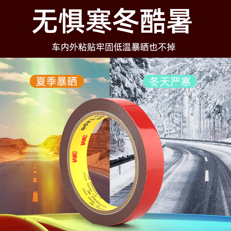 3MPX5008强力双面胶车载摆件固定汽车尾翼改装耐高温无痕粘胶行车记录仪雨眉晴雨挡粘贴防水泡沫海绵灰色胶条