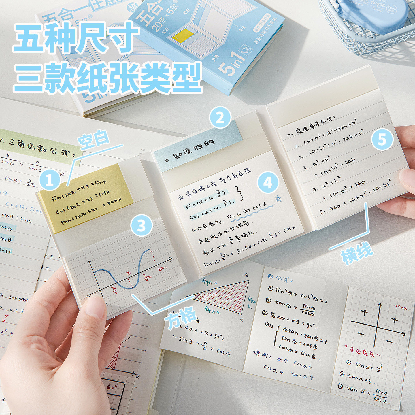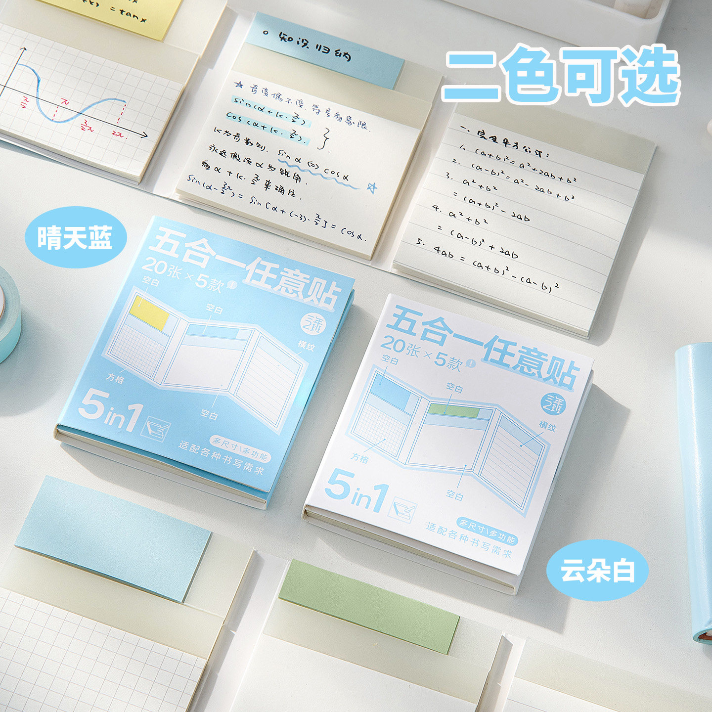 三年二班 五合一任意贴小学初中生专用便签纸高颜值便利贴小条可撕索引标签贴办公用书签标记贴扩张便利贴