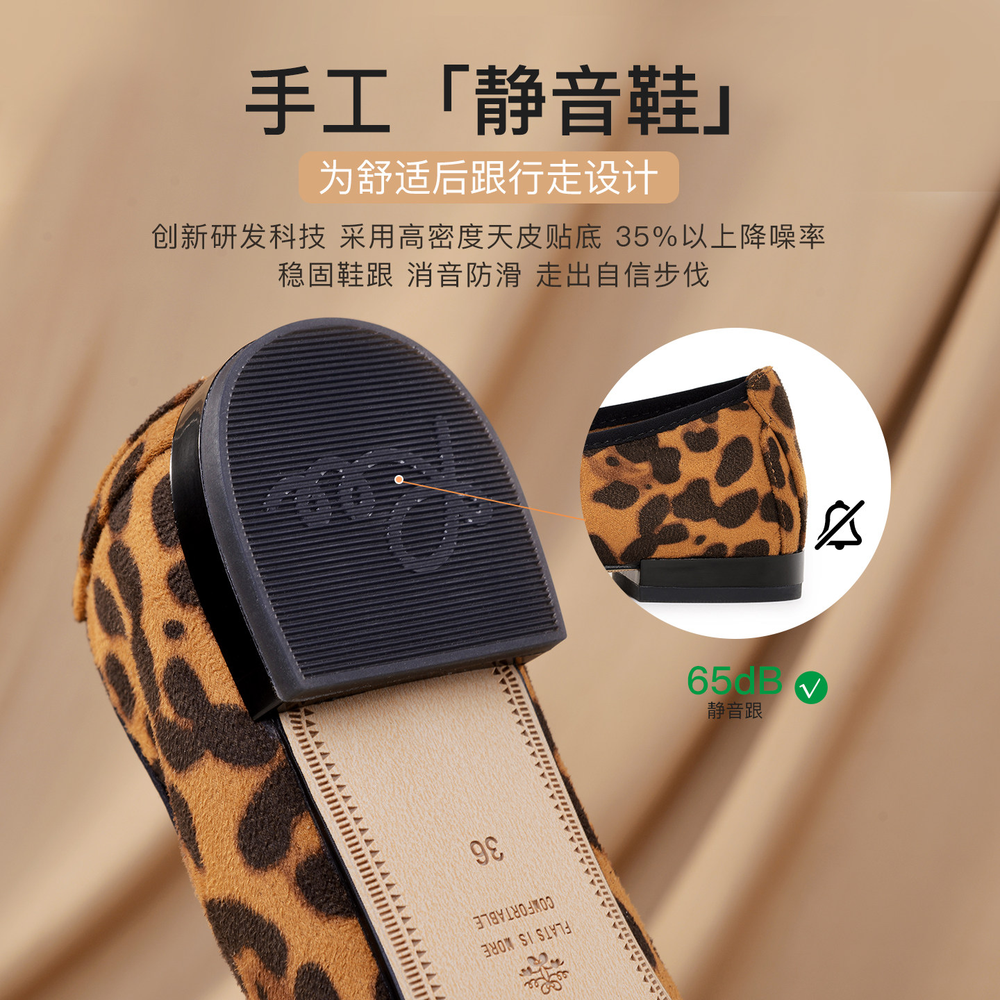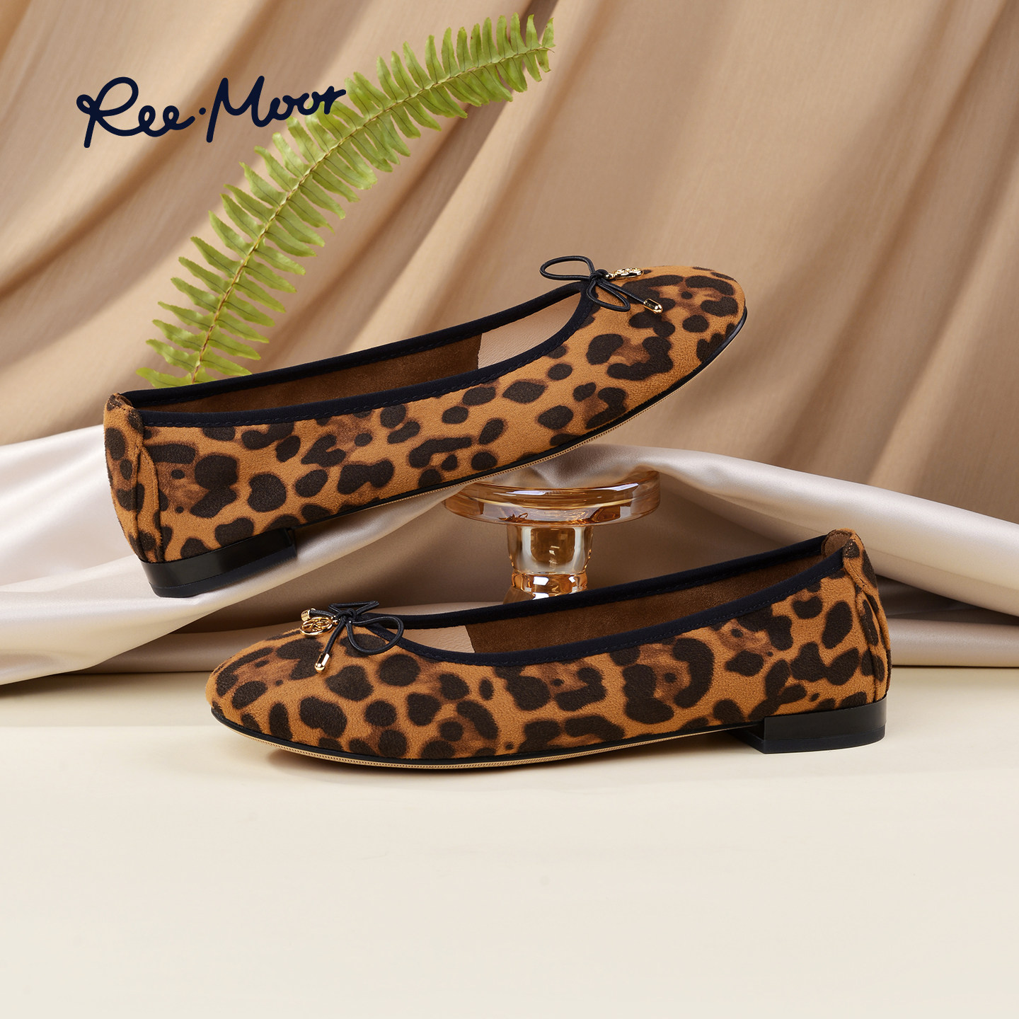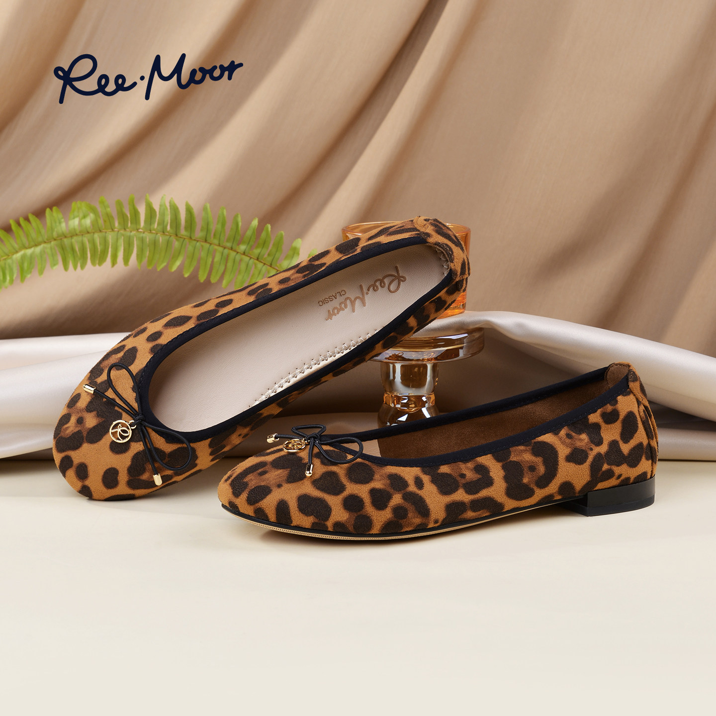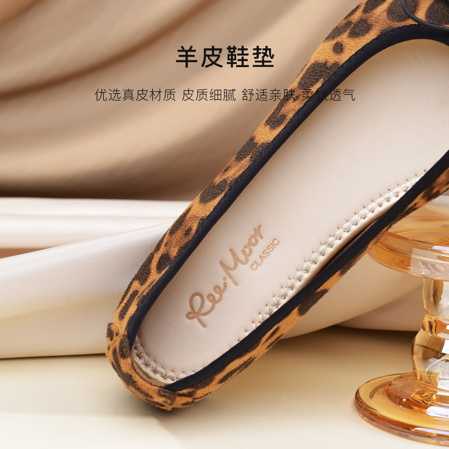 REEMOOR睿慕2025秋季新款法式豹纹圆头浅口单鞋一字带平底鞋女鞋