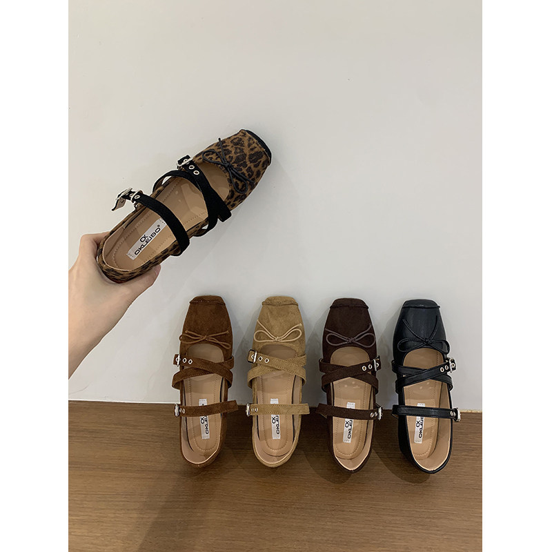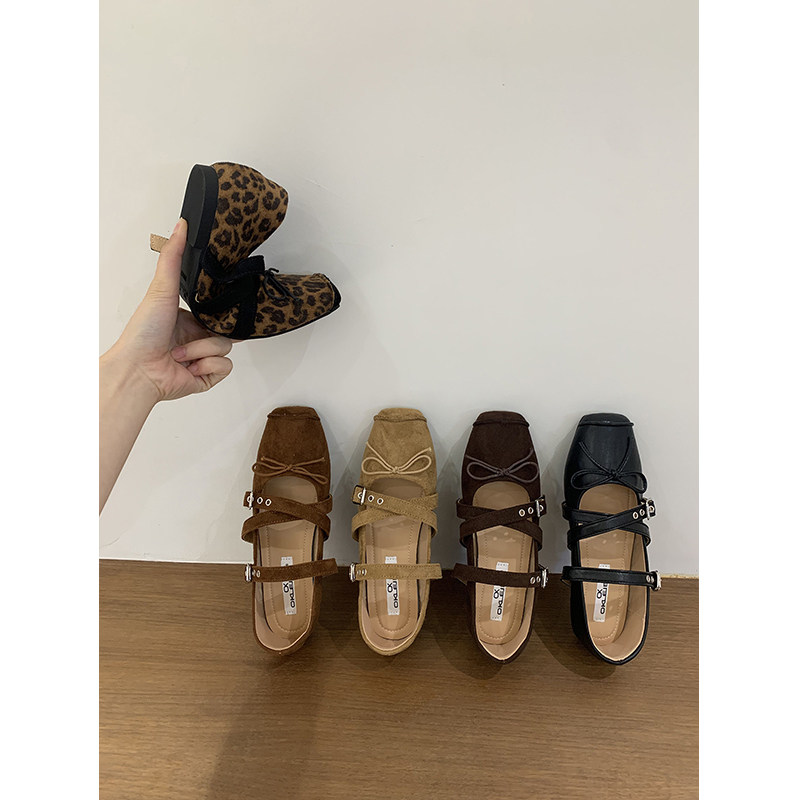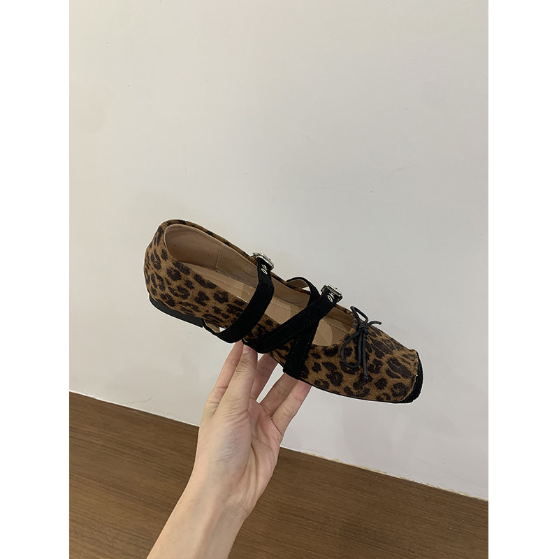 法式复古豹纹浅口玛丽珍单鞋2025春秋新款晚晚风蝴蝶结温柔芭蕾鞋