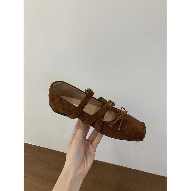 羊皮版复古玛丽珍鞋女方头秋冬季加绒保暖毛毛棉鞋平底晚晚单鞋女