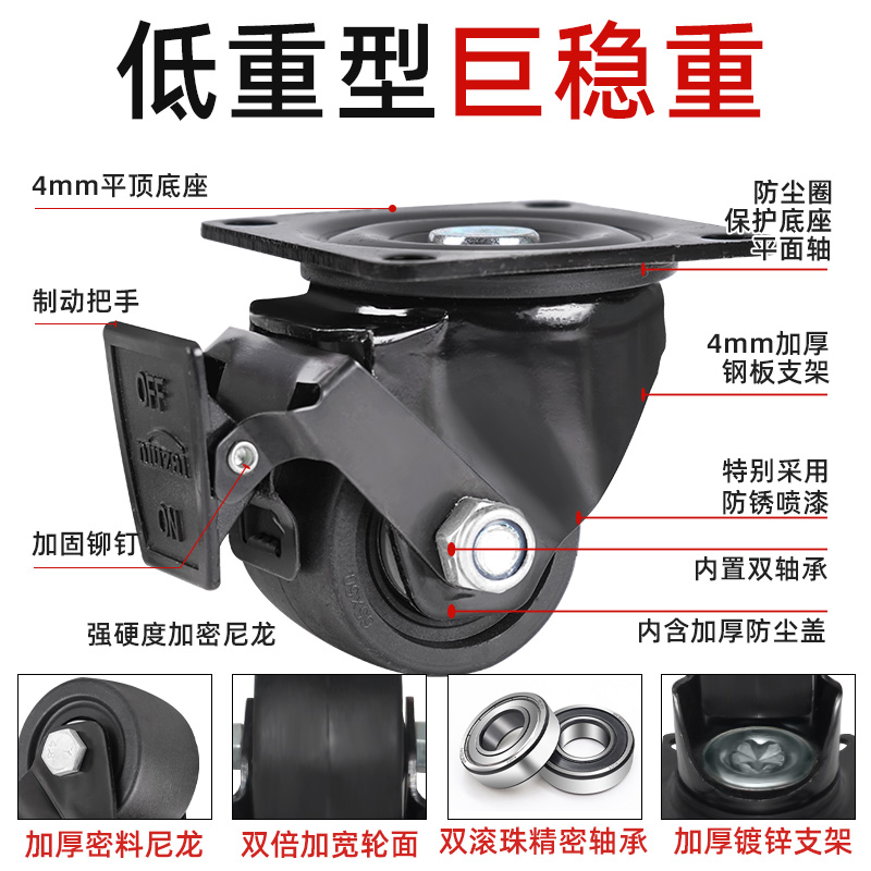 3寸脚轮超重型万向轮2.5寸尼龙承重轮子2寸滚珠底座刹车定向载重