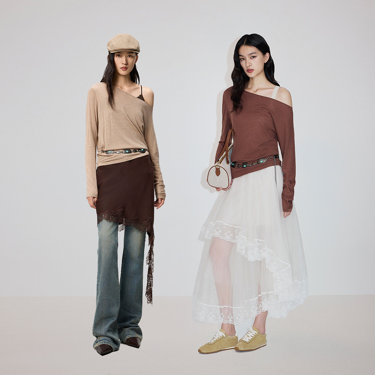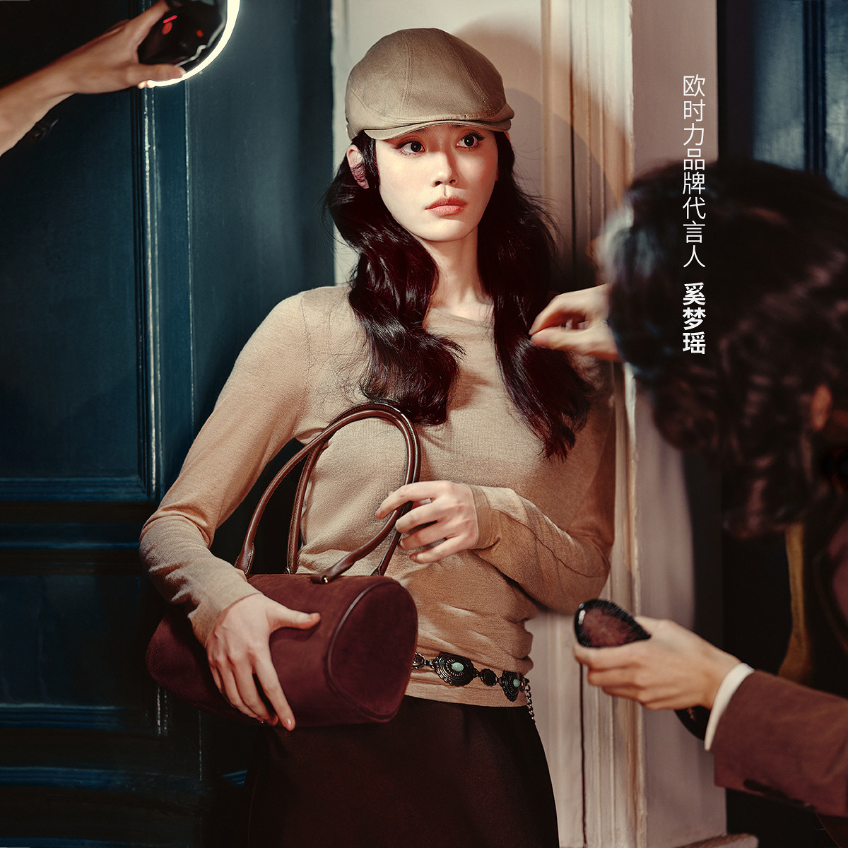 【新品】奚梦瑶同款 欧时力 天丝羊绒醋酸斜肩轻薄针织毛衫2026春