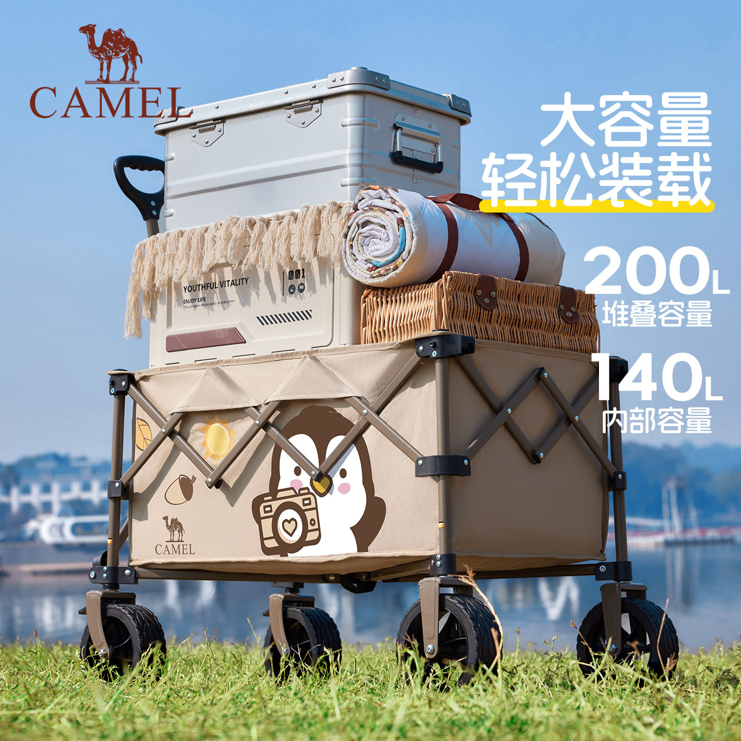 camel露营车户外折叠野营推车营地拖车野餐大容量拉快递儿童可躺