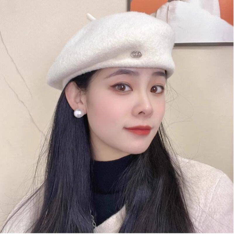 毛呢贝雷帽女2025新款网红大头围夏天遮阳帽显脸小保暖蓓蕾画家帽