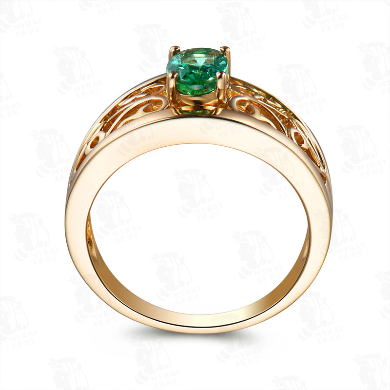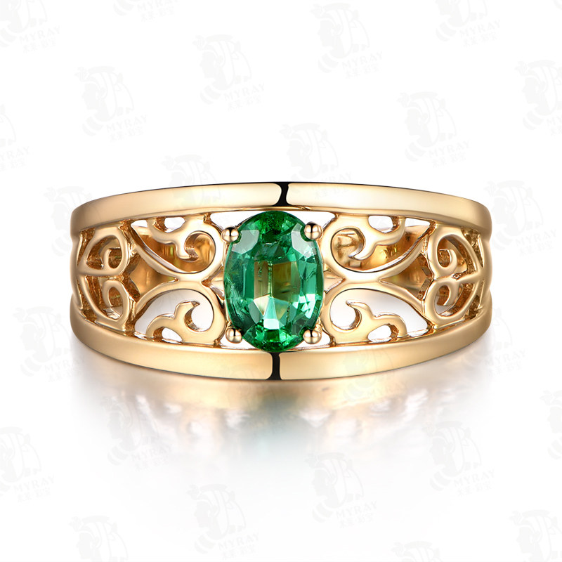 米莱珠宝 0.5克拉祖母绿戒指 18K金镶嵌彩宝戒指女彩色宝石 定制