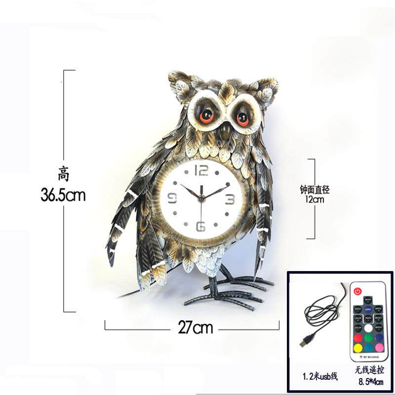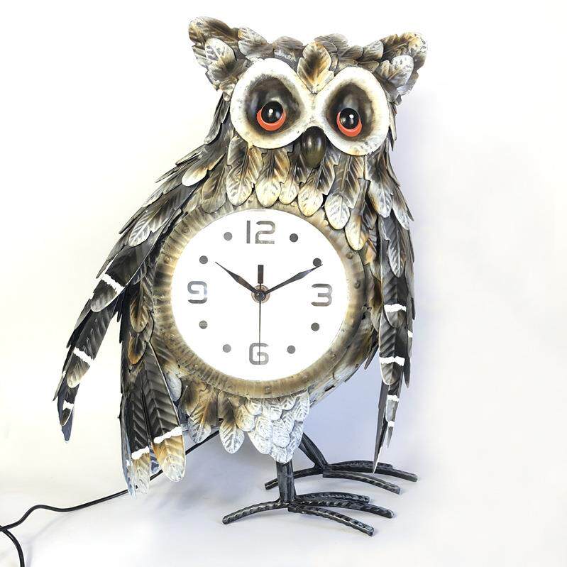 铁艺工艺钟座钟 猫头鹰创意钟表 客厅轻奢摆钟动物夜光带灯36.5c
