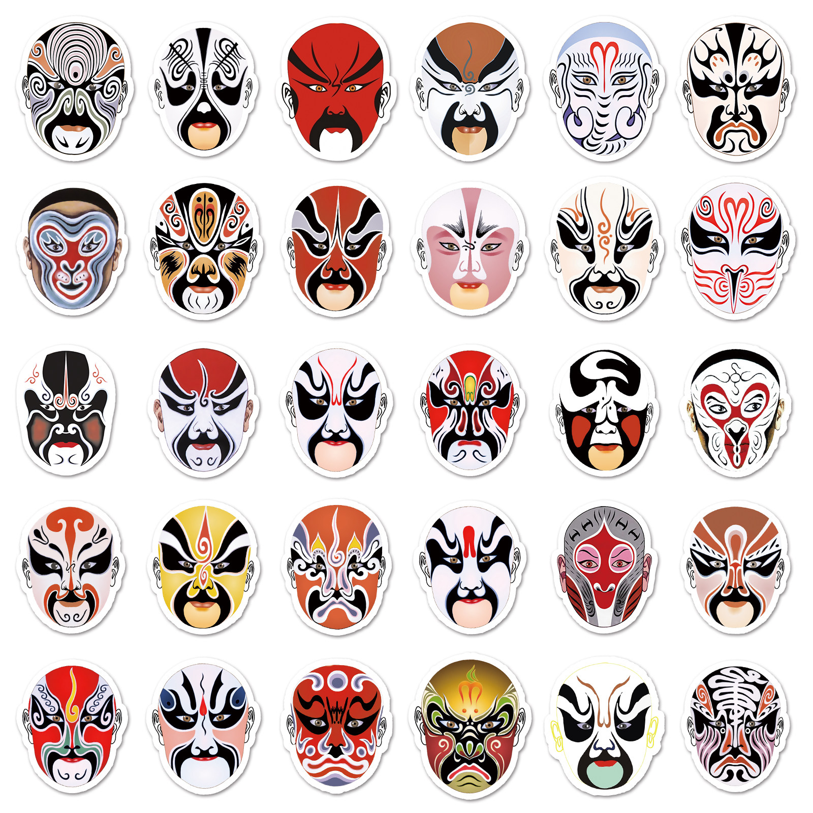 120张脸谱贴纸中国风京剧戏曲花旦创意涂鸦图案装饰贴画保温杯手机壳行李箱吉他头盔手账diy咕卡冰箱防水贴纸