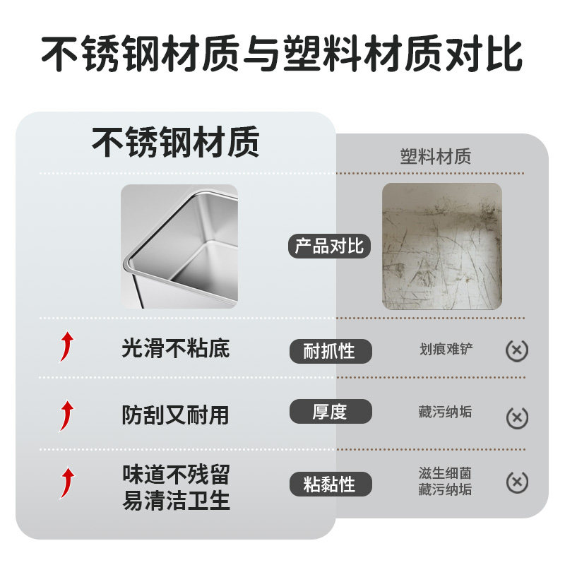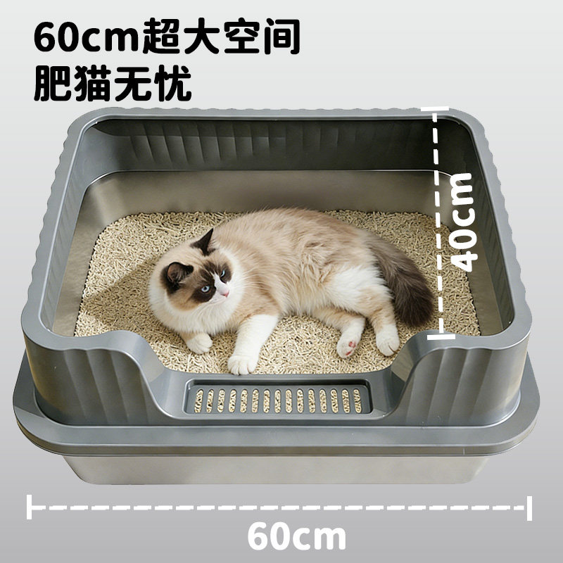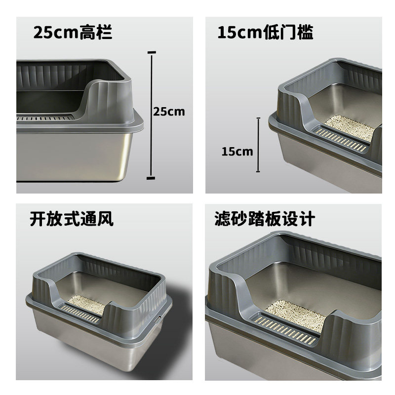 不锈钢猫砂盆超大号防外溅开放式加高围边沙盆子屎盆特大猫咪厕所