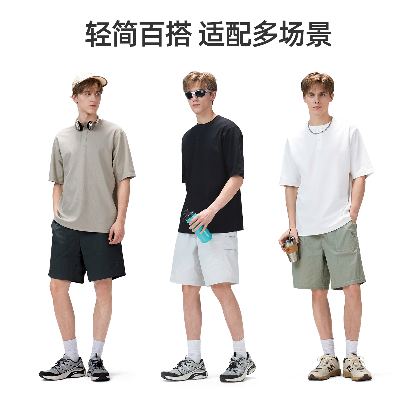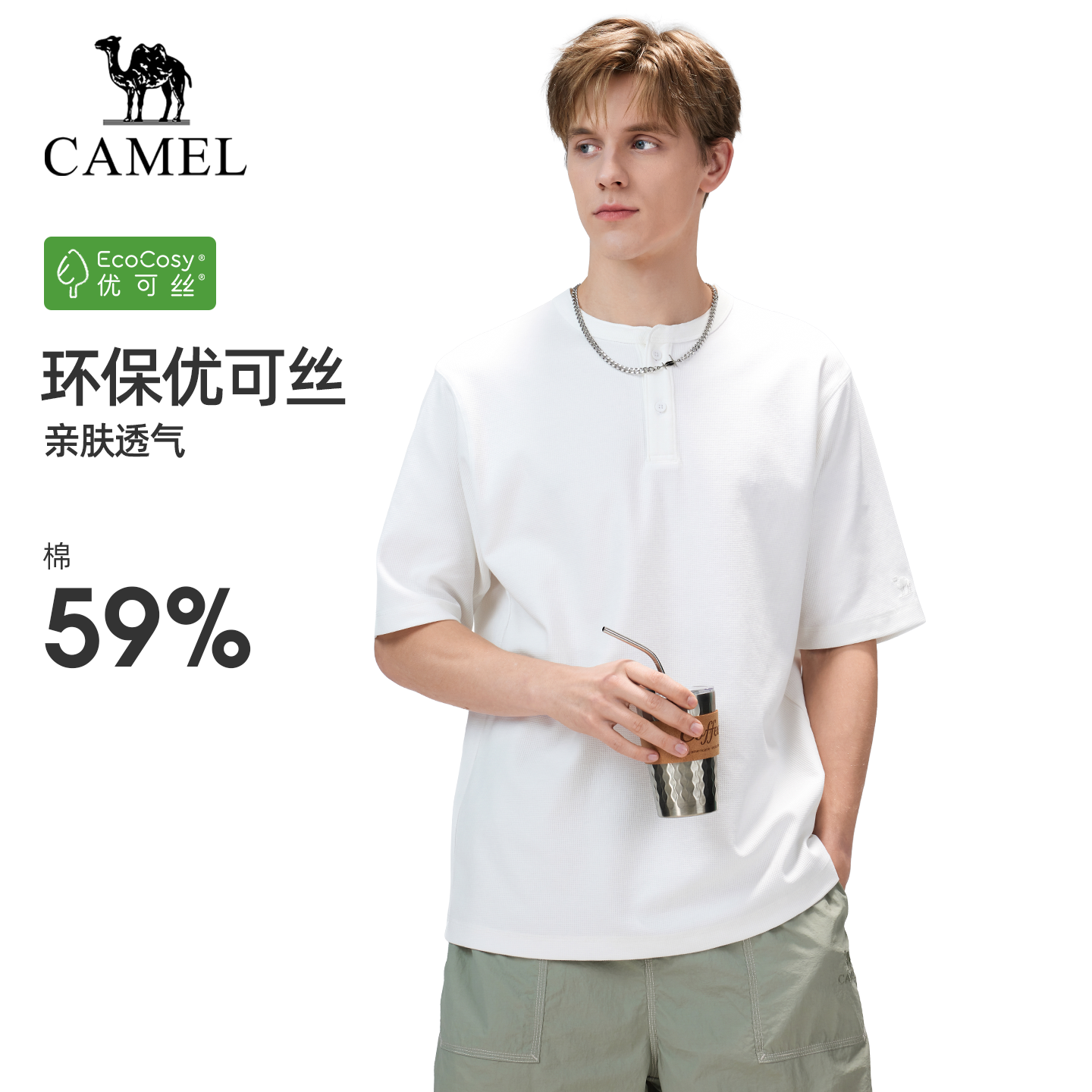 骆驼男装圆领短袖T恤男士夏季新款户外通勤优可丝打底衫白色透气