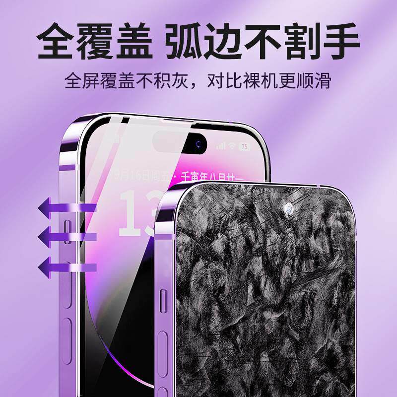 [不沾指纹]适用iPhone17/16钢化膜苹果15/14手机13promax防窥12全屏XR/xsmax全包11贴X防摔8por高清plus