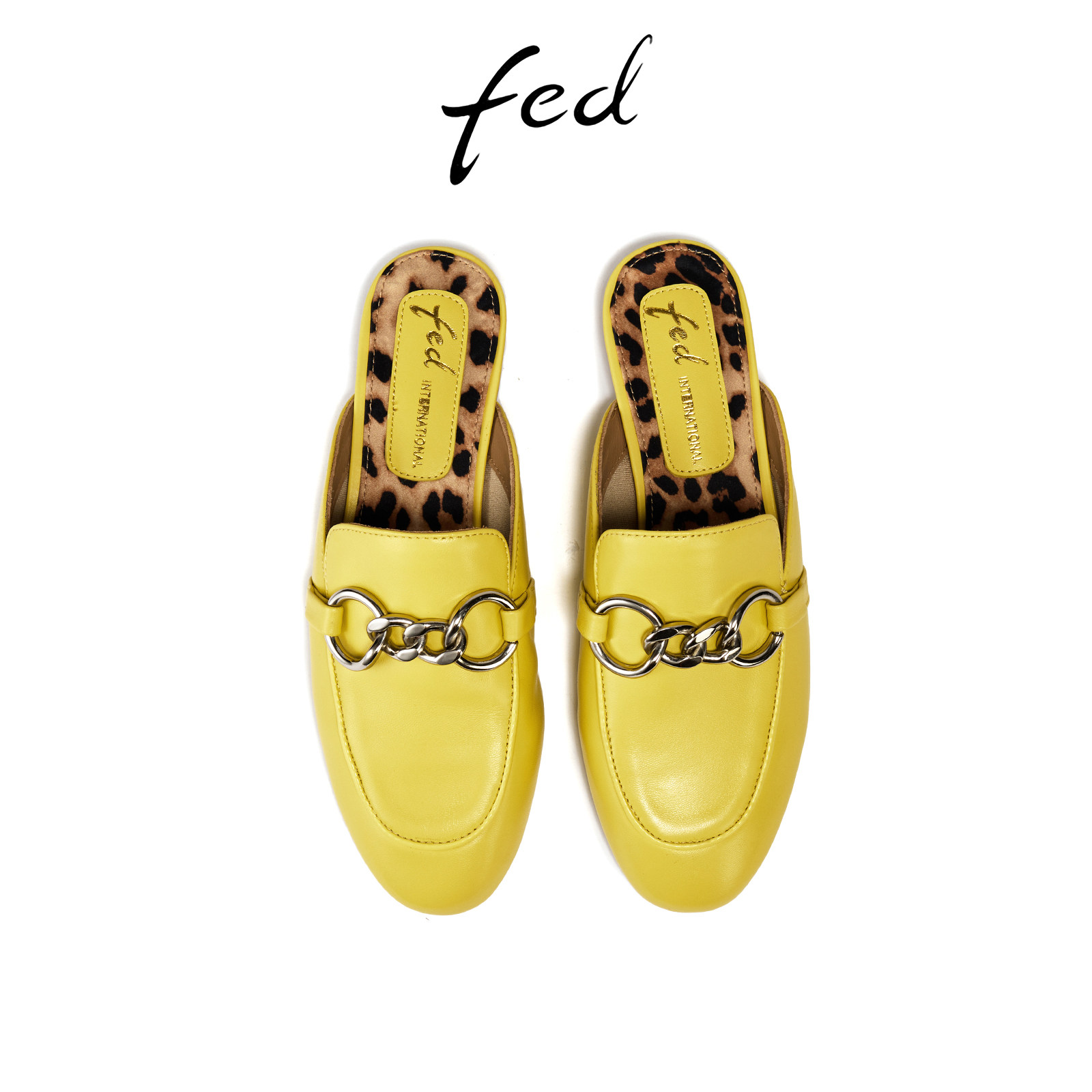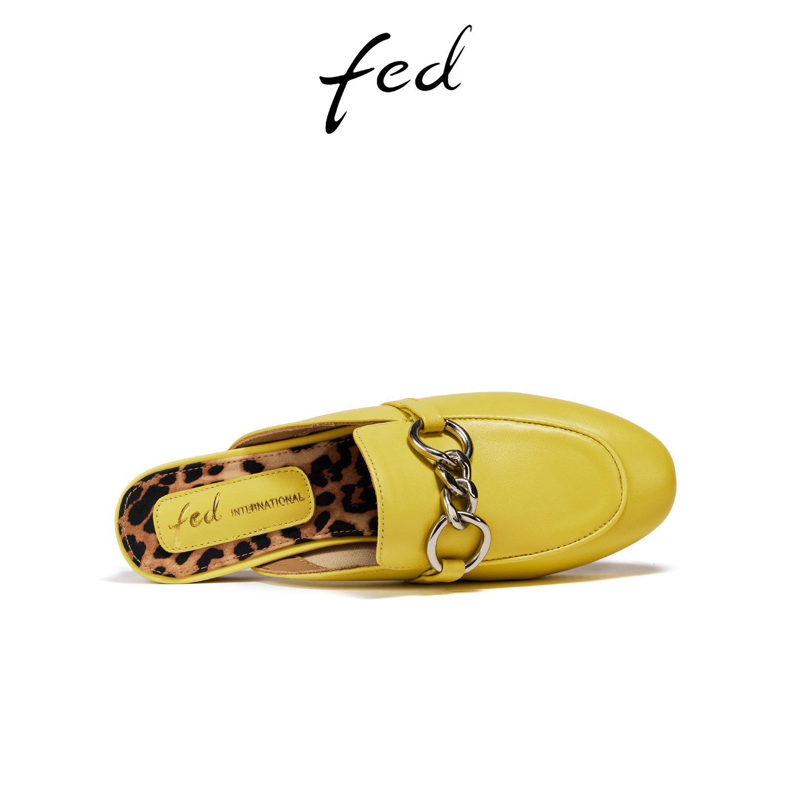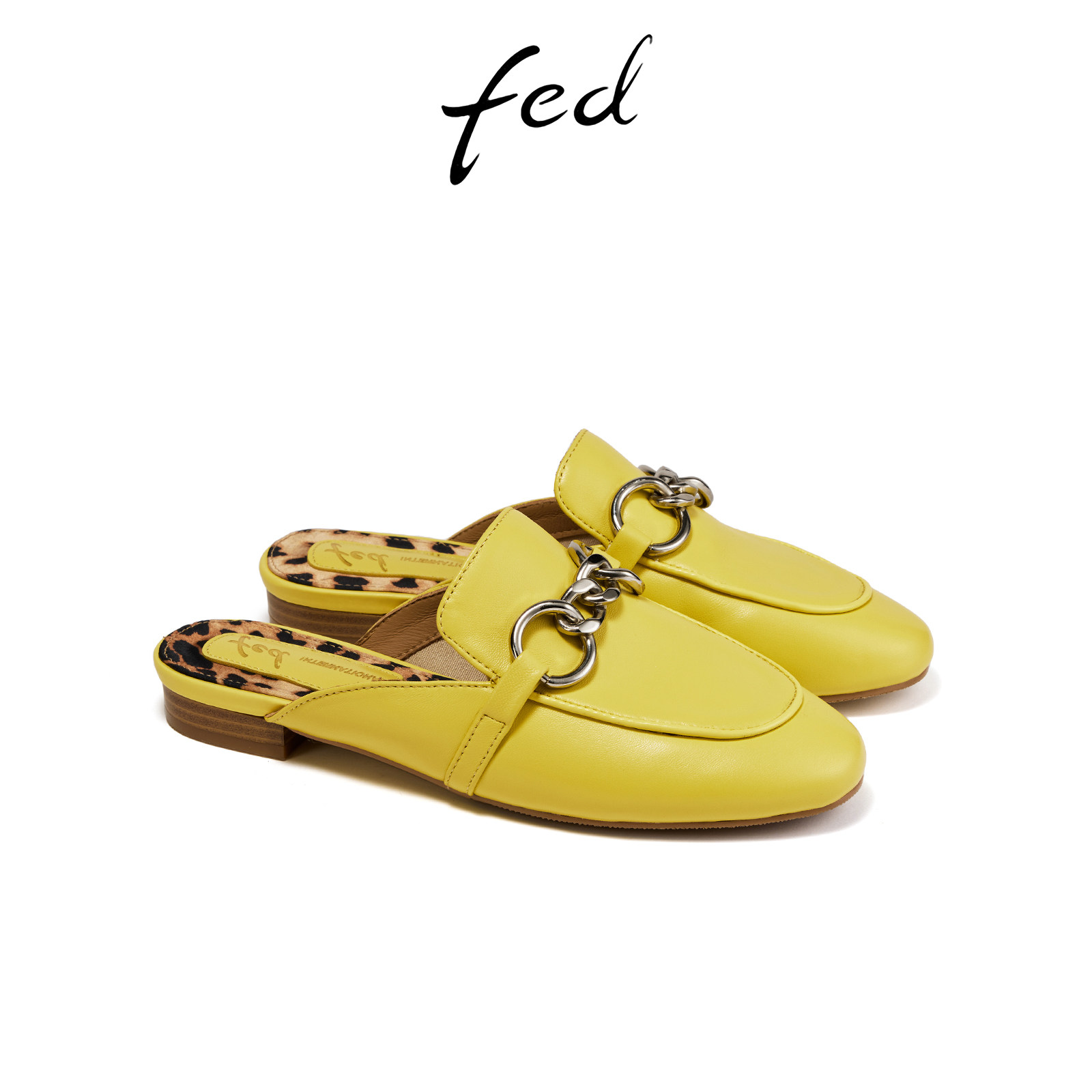 fed包头半拖夏季新款女鞋黄色穆勒鞋尖头凉拖鞋女款S0609-YAB327