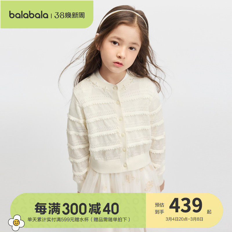 【premium】巴拉巴拉高端线探秘自然系列轻薄提花长袖毛衫女童秋