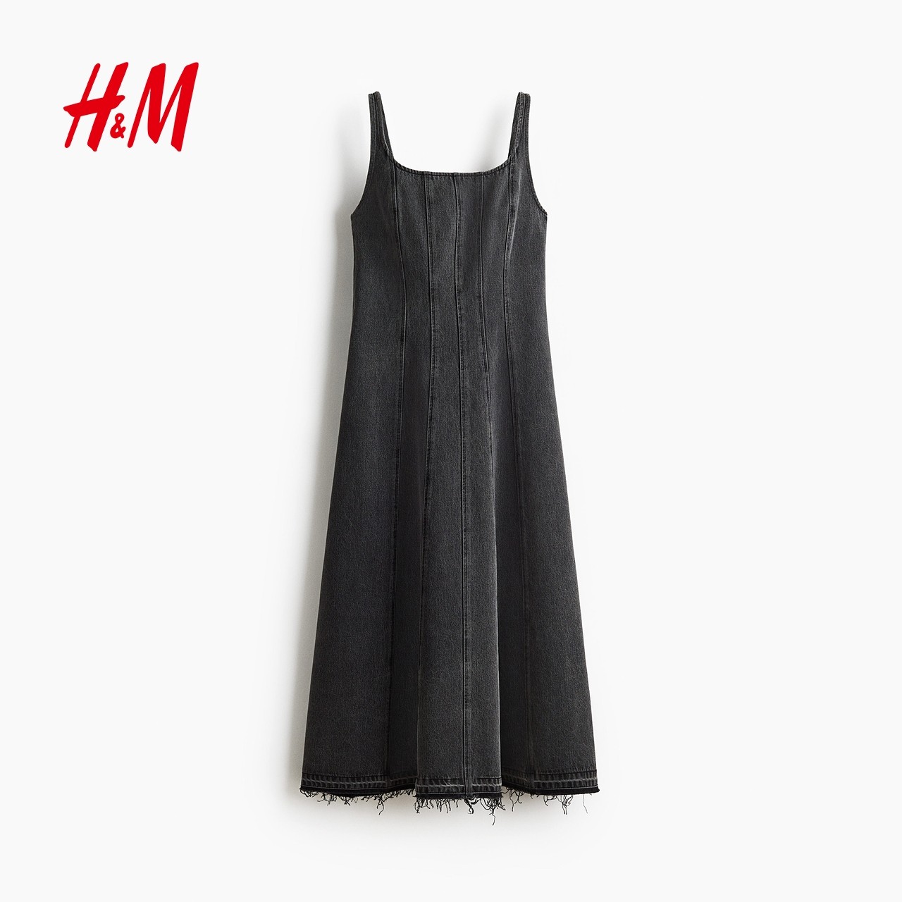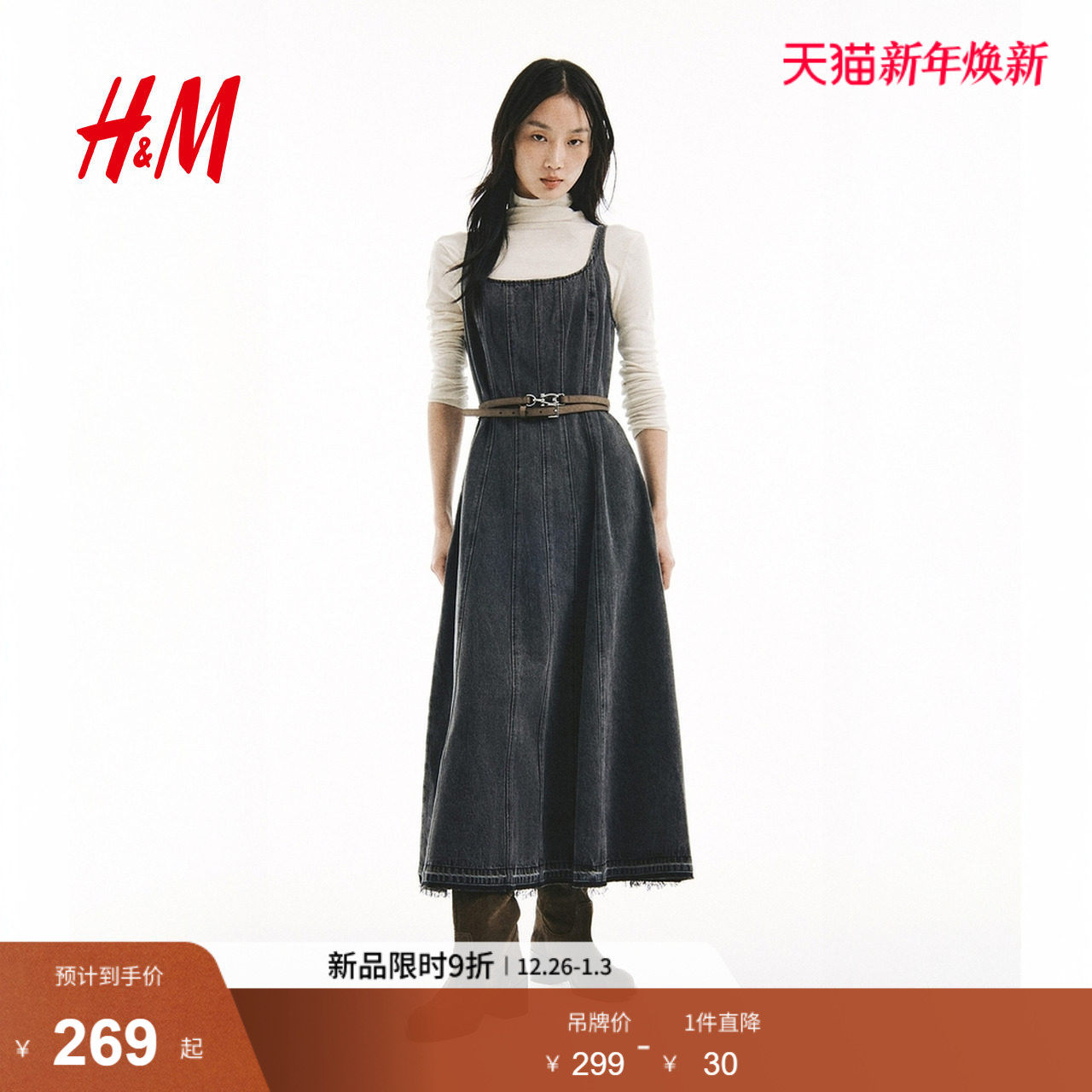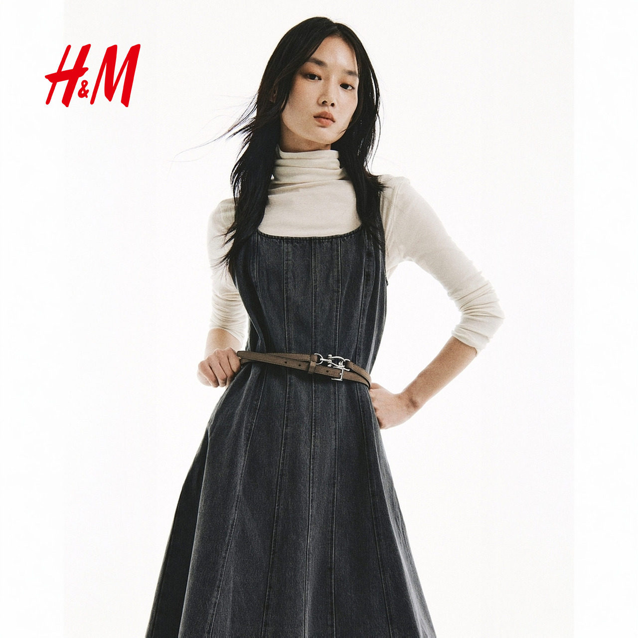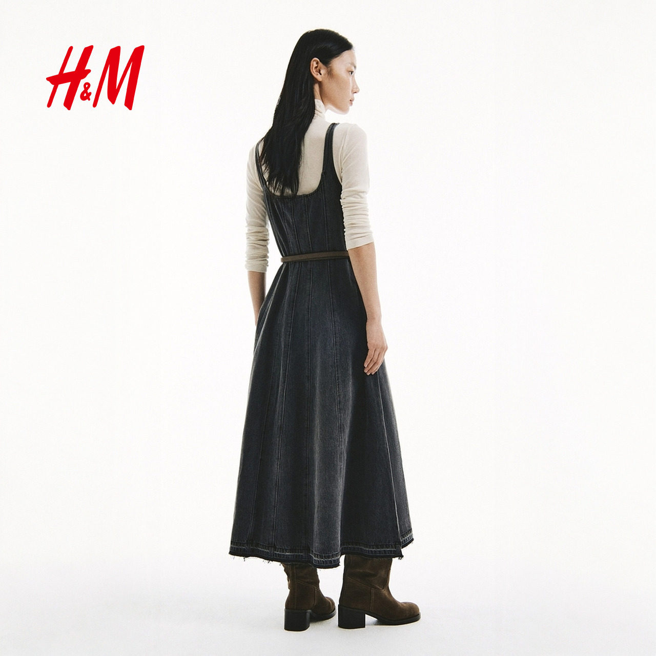 HM2025冬季新款女装喇叭裙摆牛仔连衣裙1322644