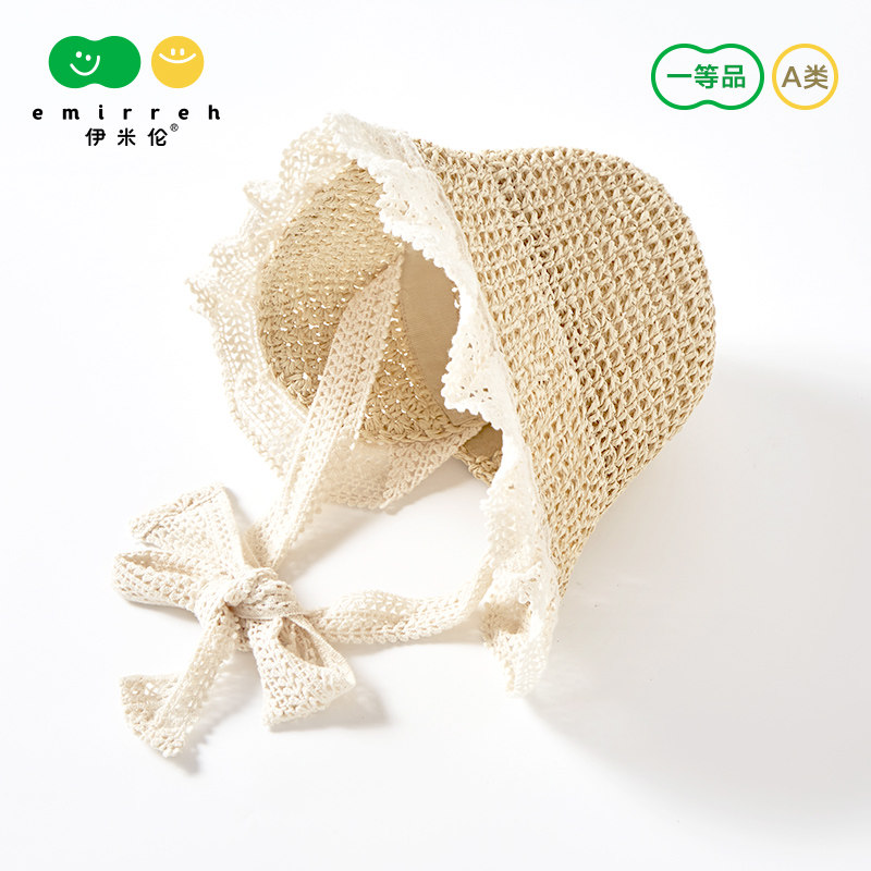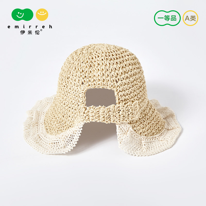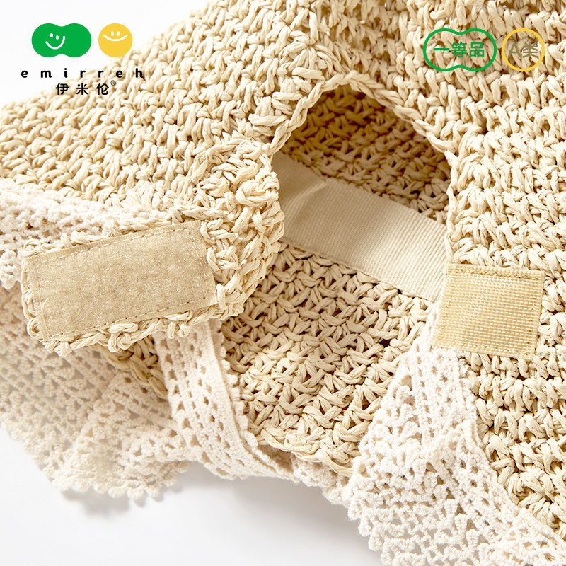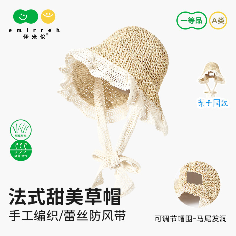 伊米伦儿童草帽手工款亲子遮阳帽海滩帽夏季女童宝宝太阳帽公主帽