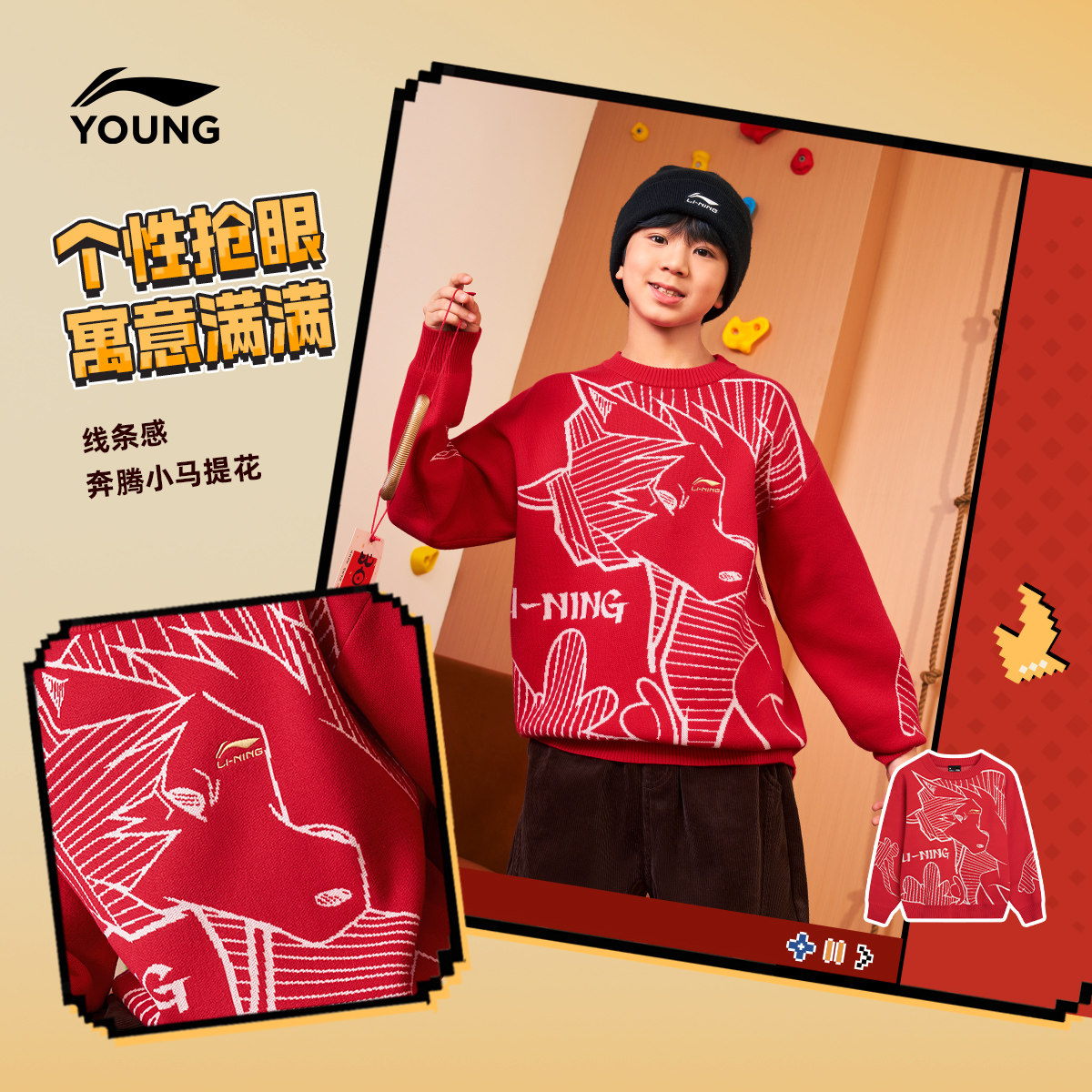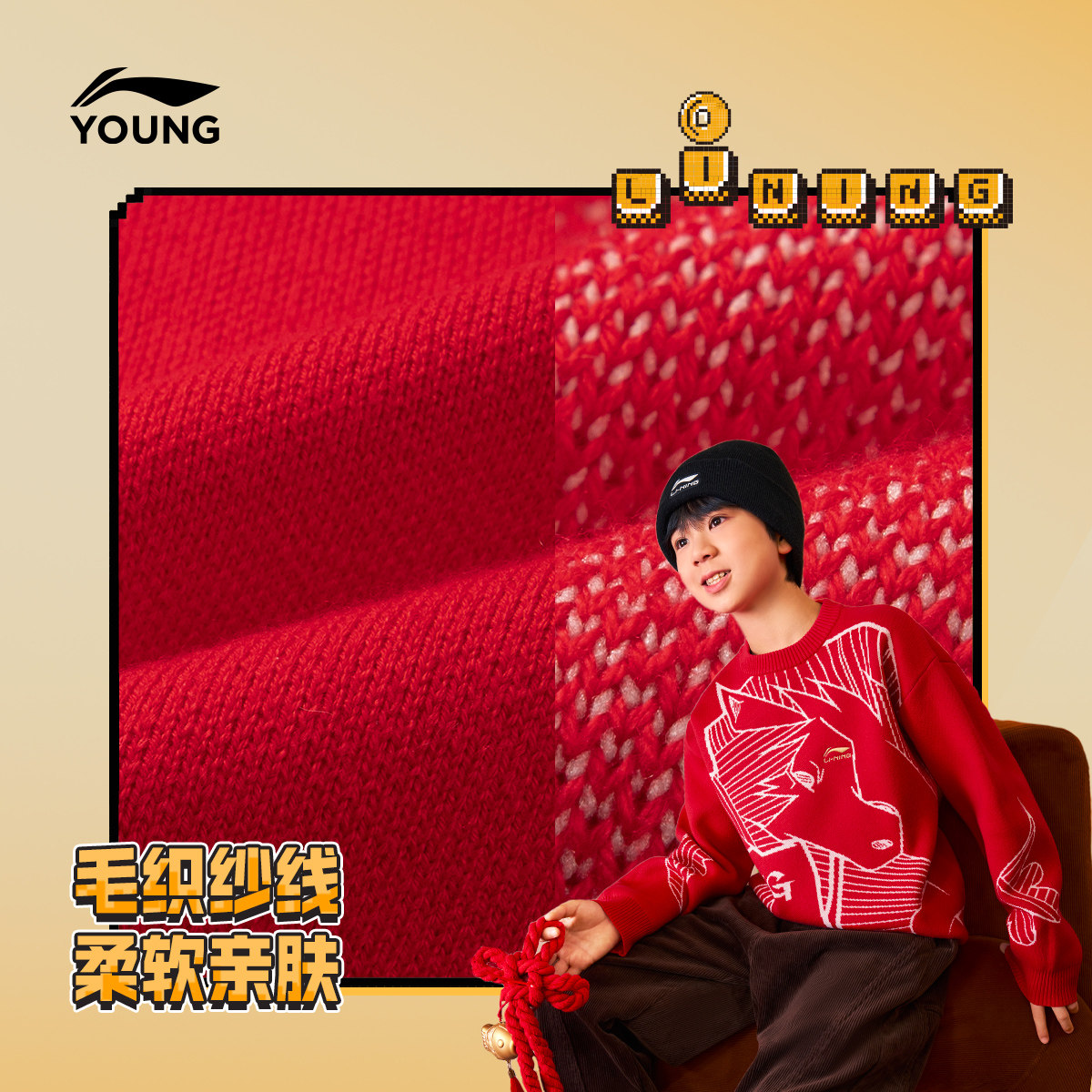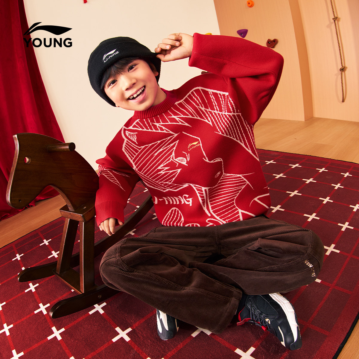 李宁童装编织衫男女小大童运动生活系列宽松秋冬休闲毛衣针织童装