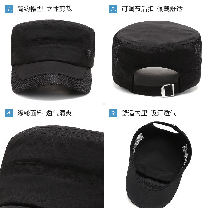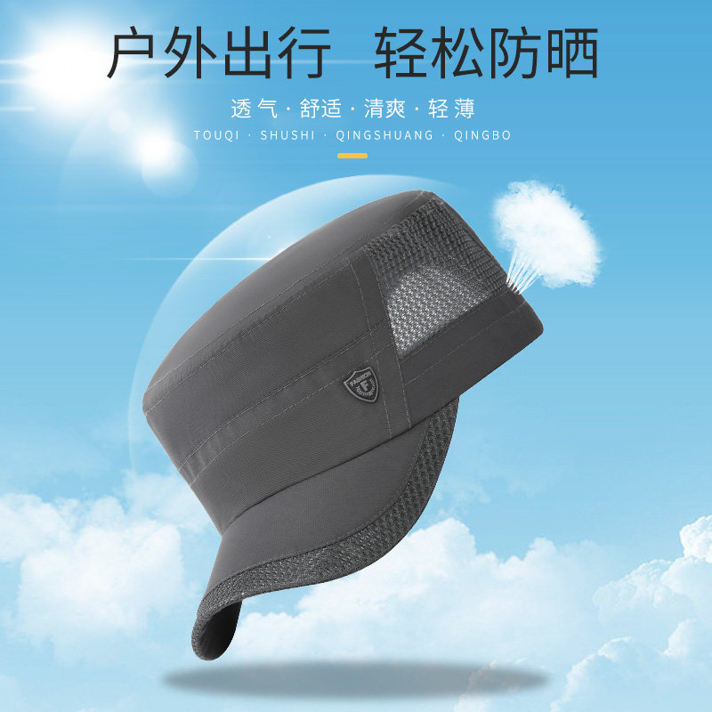 帽子男士夏季速干防晒平顶帽薄款中老年人爸爸爷爷户外网眼遮阳帽
