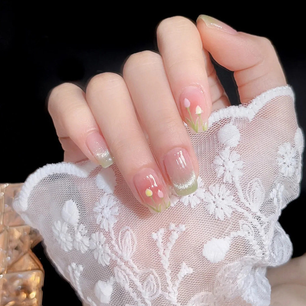 2026爆款【洛可可兔兔】穿戴甲短款纯欲ins风温柔气质仙手工穿戴甲光疗儿童甲可拆卸美甲贴显白假指甲贴片