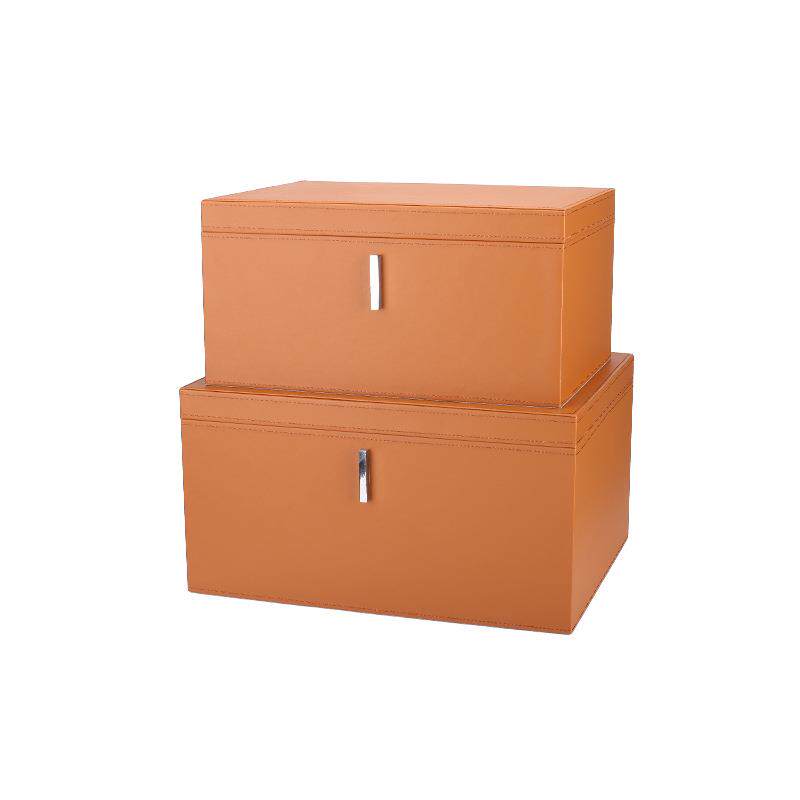 北欧风别墅样板间铆钉装饰盒软装衣帽间大容量收纳盒整理皮革摆件