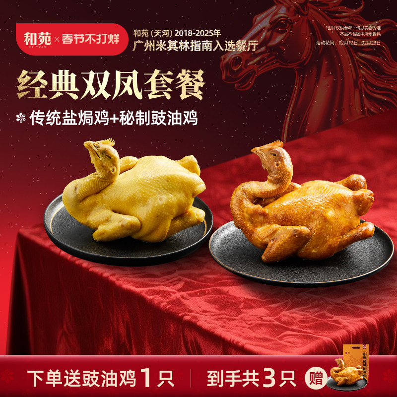 和苑酒家招牌双凤盐焗鸡豉油鸡整只鸡熟食速食预制菜鸡肉加热即食