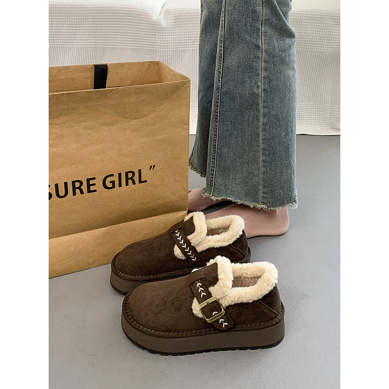 厚底加绒勃肯鞋女2025冬季新款复古增高毛毛雪地靴豆豆鞋保暖棉鞋