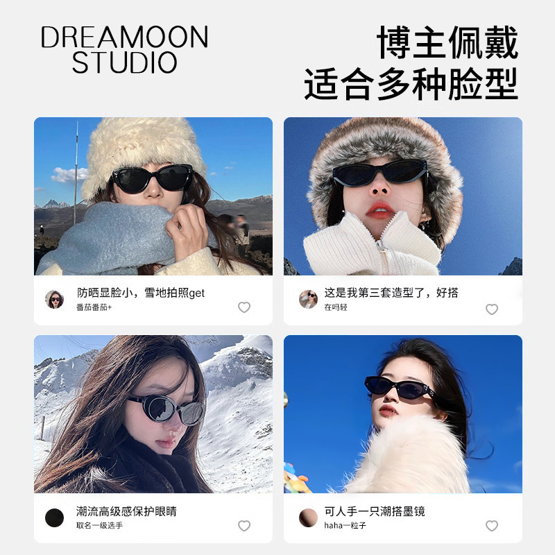 蕉下猫眼户外墨镜男女款复古高级感椭圆小框防晒时尚折叠太阳镜