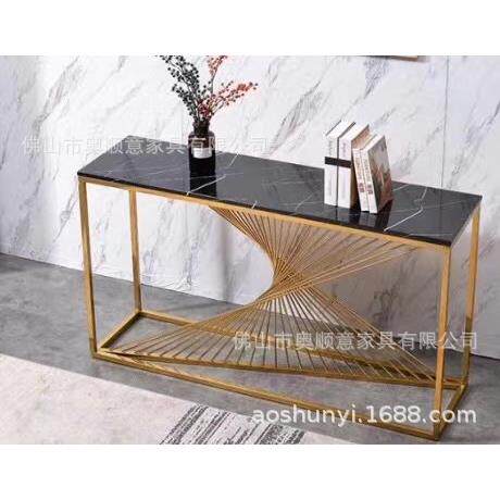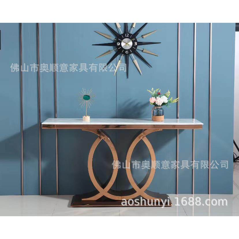 轻奢不锈钢镂空家具玄关台简约玄关柜现代大理石玄关桌子金色案台