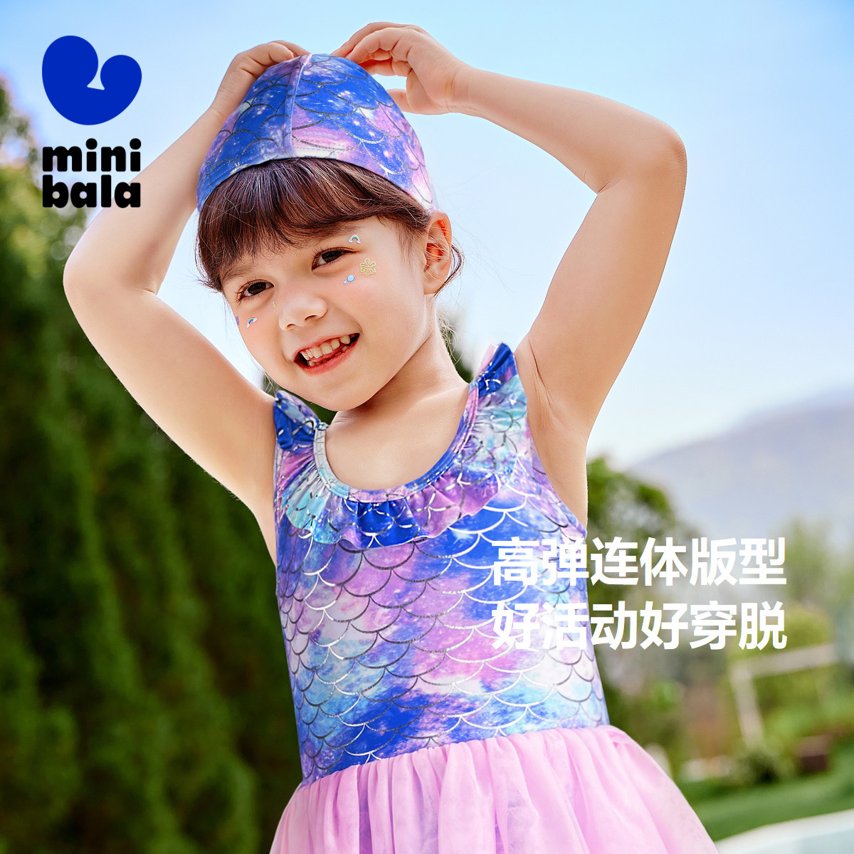 【美人鱼】迷你巴拉巴拉女童游泳衣裙女宝宝高弹连体泳装UPF50+