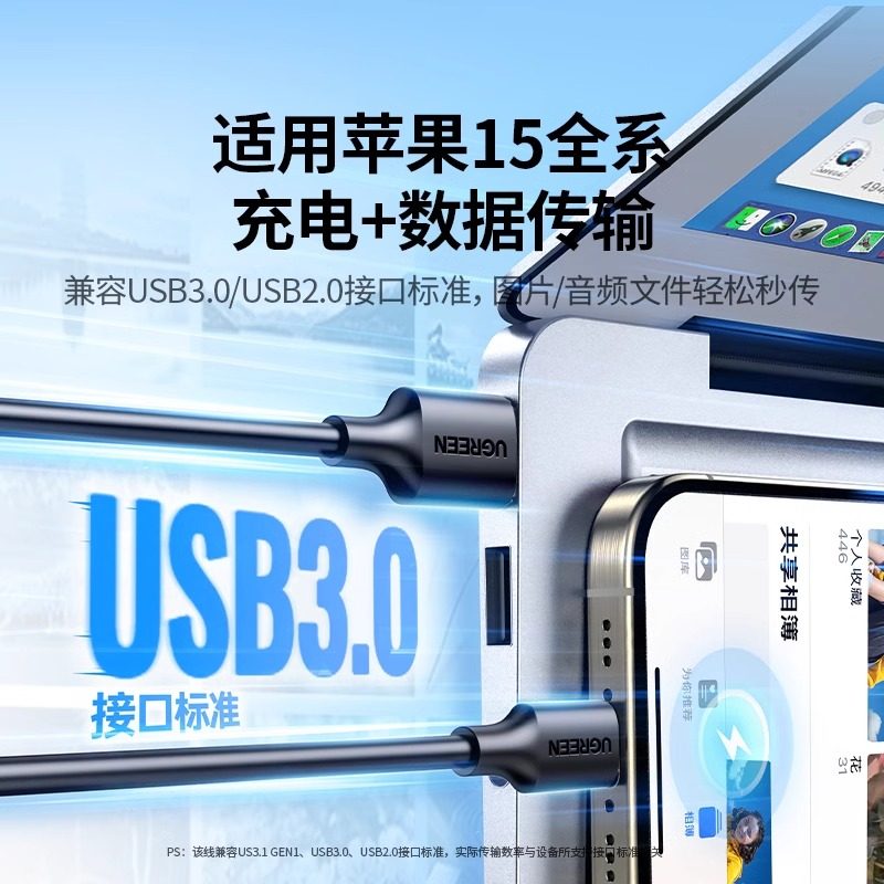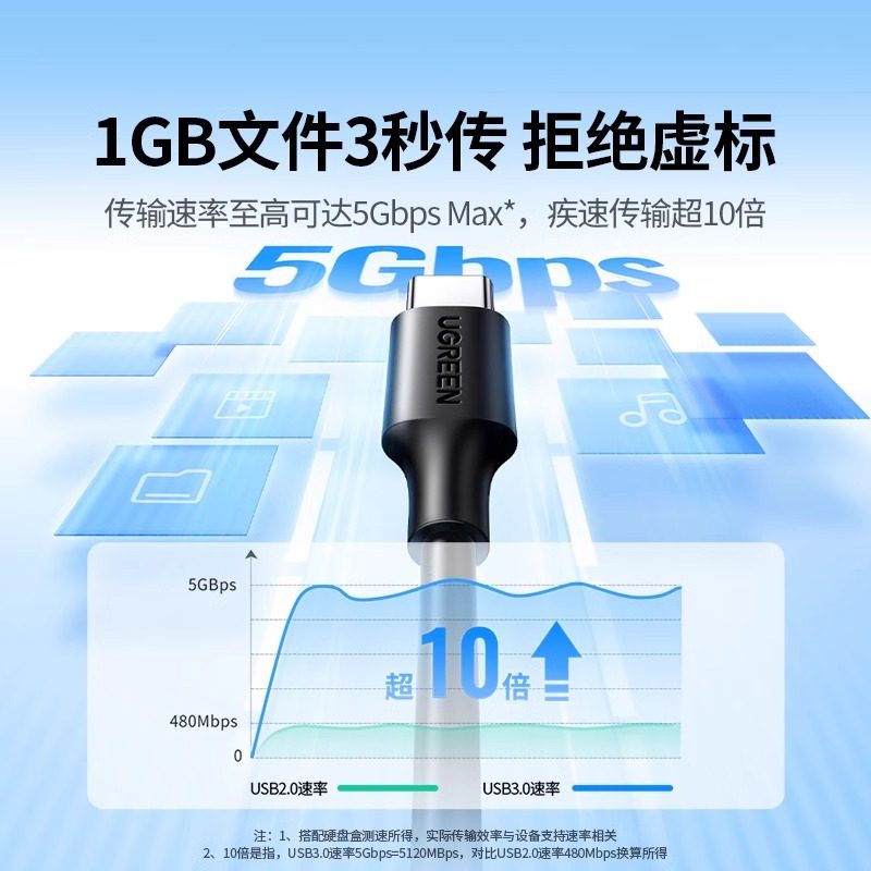 绿联usb3.0转type-c数据线接高速移动硬盘盒iPad电脑数据传输Air4刷机Pro适用于安卓手机通用快充线短