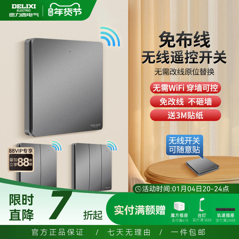 德力西遥控开关无线感应开关免布线智能开关远程遥控开关控制器灰