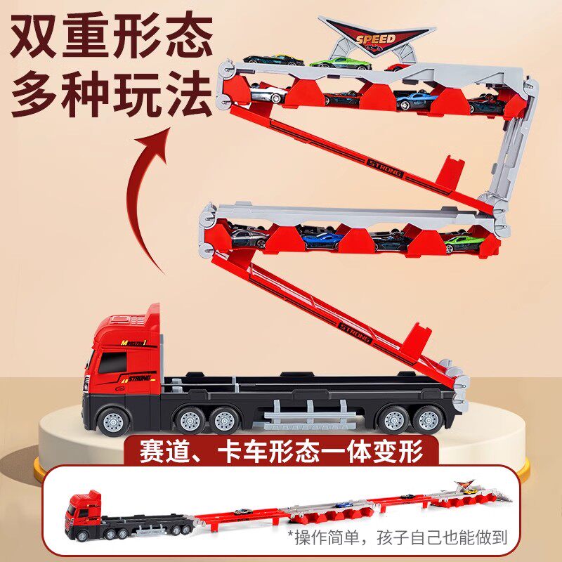 儿童轨道玩具车卡车变形滑行弹射合金收纳小汽车男孩子新年礼物3
