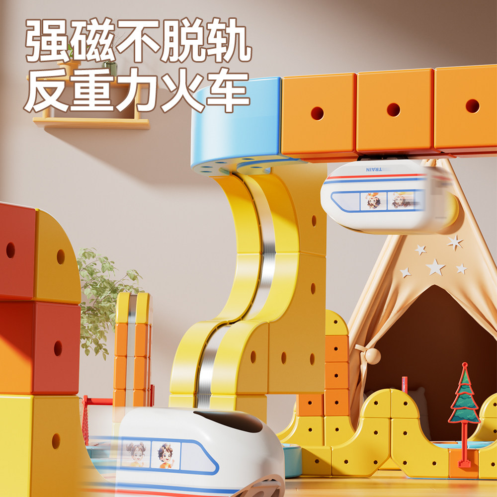 魔幻百变磁力轨道立方体儿童益智玩具高铁火车DIY积木男女孩礼物3