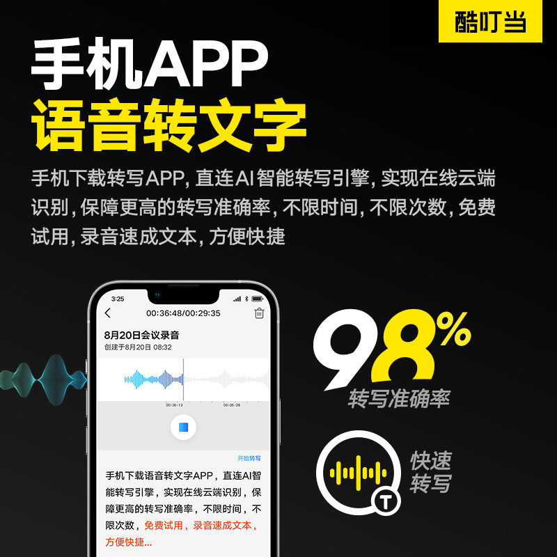 专业录音手环2026新款小型高清降噪蓝牙会议录音笔随身转文字神器