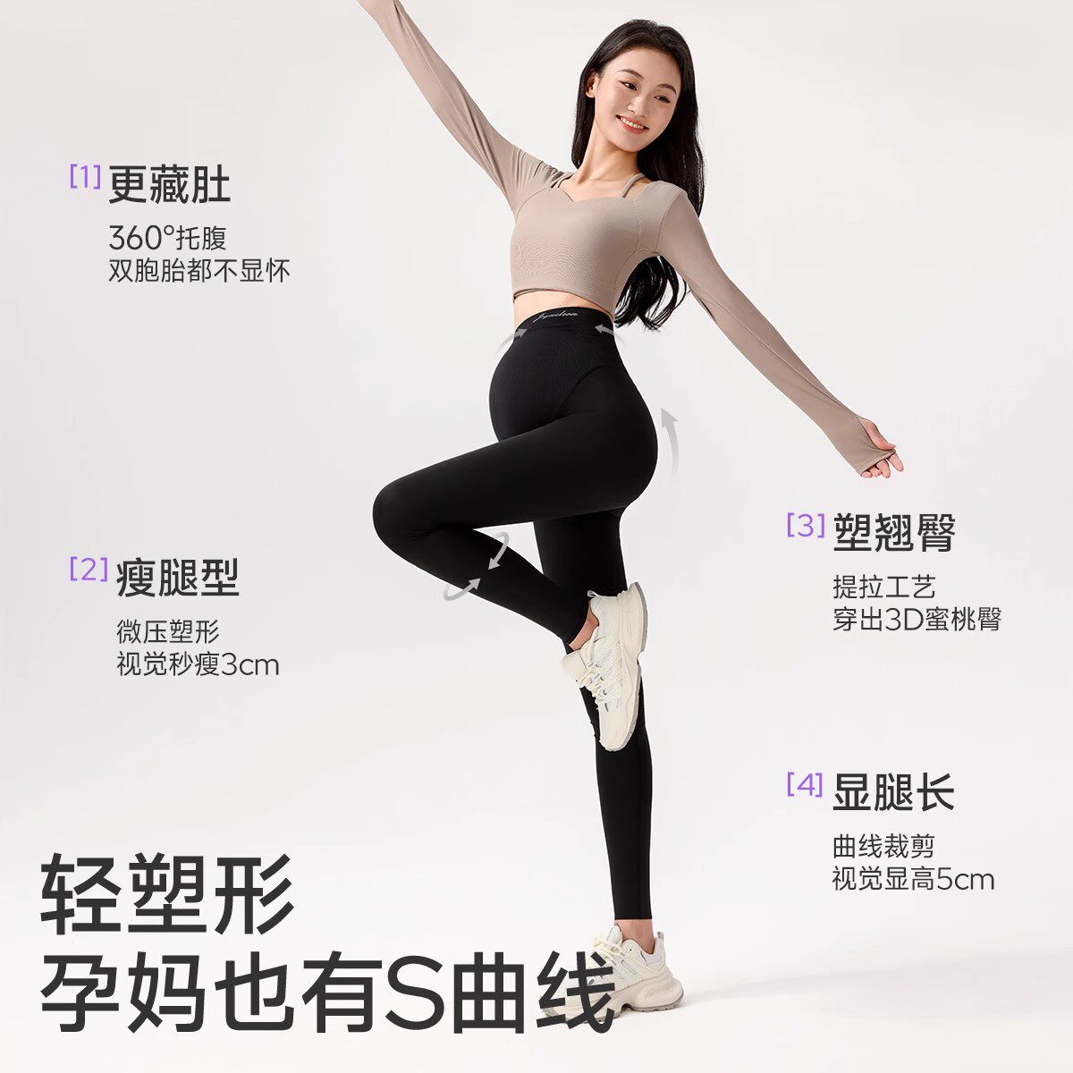 英氏孕妇打底裤2025秋冬新款外穿瑜伽裤孕妇双重提拉托腹塑形提臀