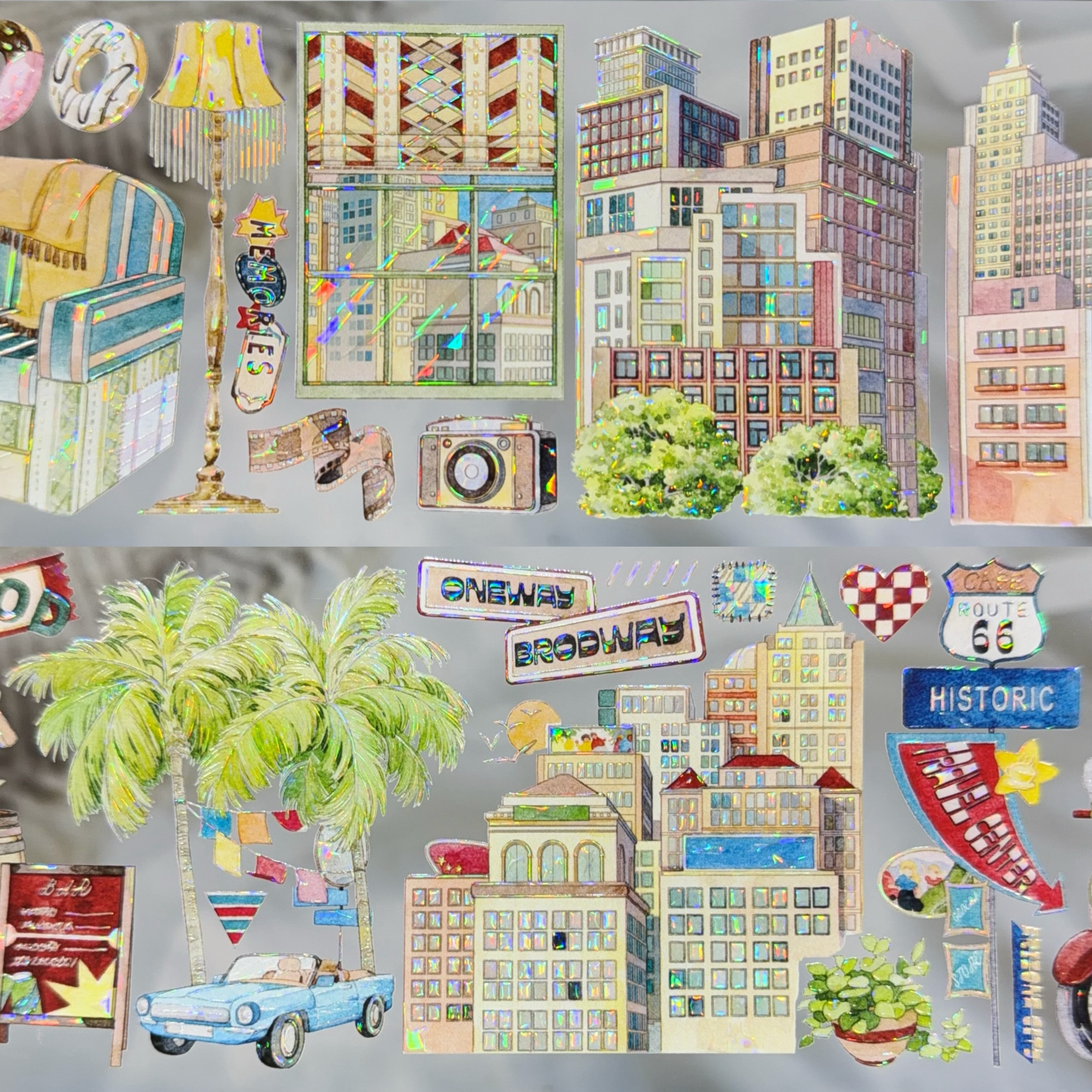 Shine新品霓虹旧梦梦之爱丽丝PET贝壳光复古港风都市背景装饰胶带