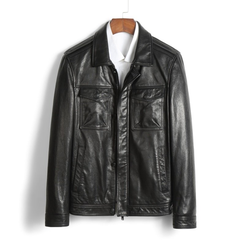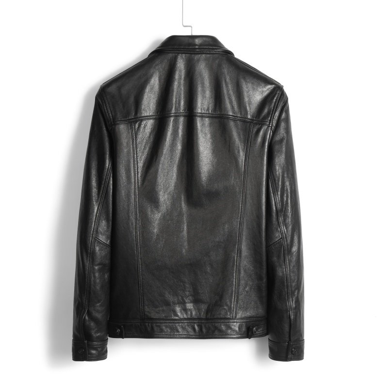【绵羊皮】九牧王翻领皮衣外套男秋冬真皮修身商务立领皮夹克男装