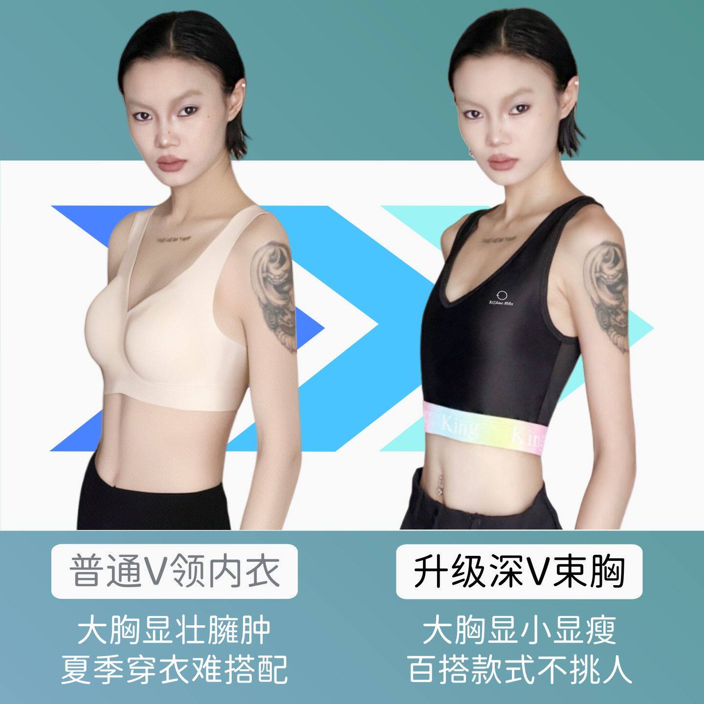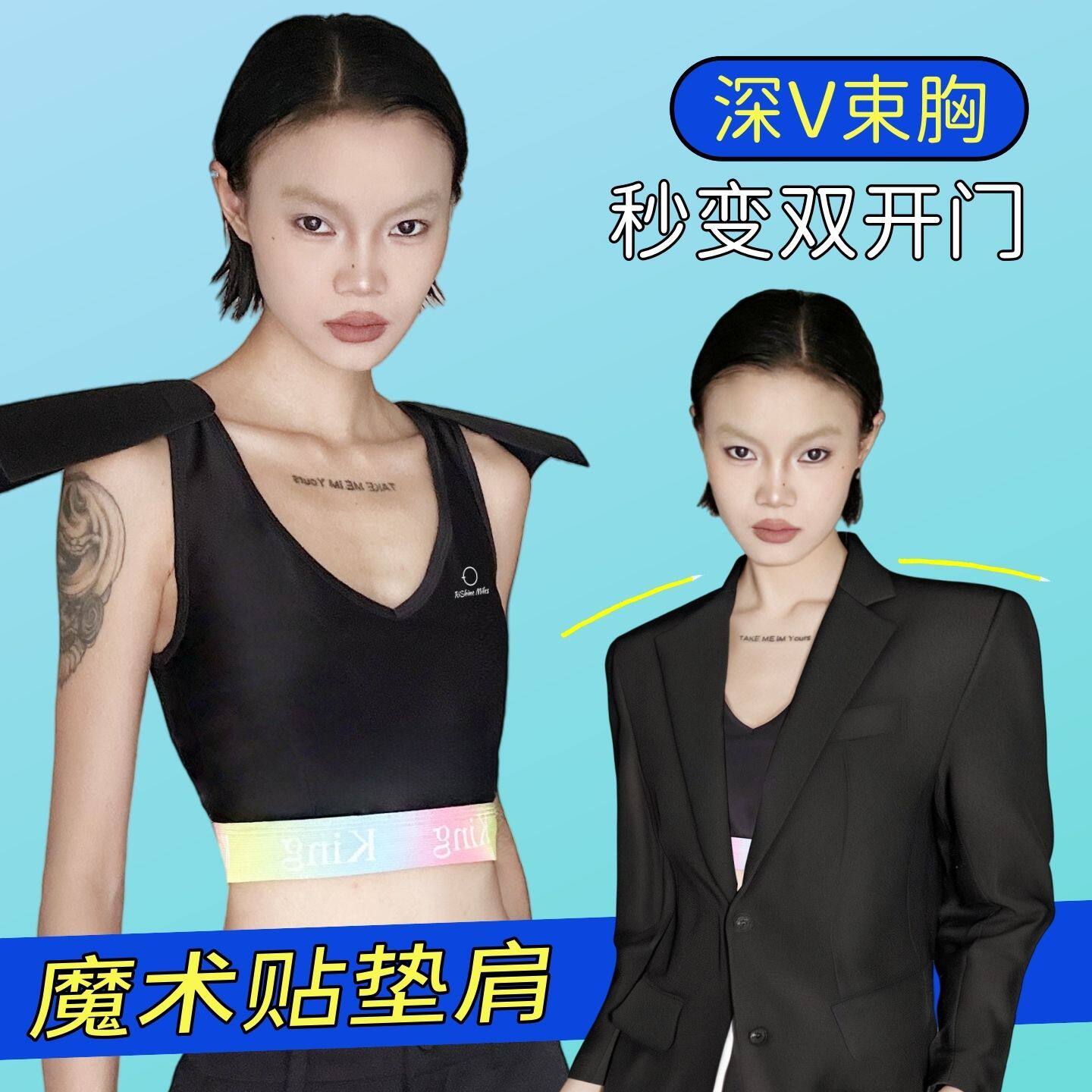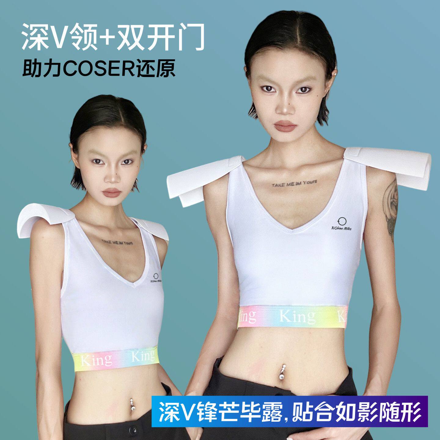 彩虹条束胸cos直角肩深v双开门垫肩内衣显胸小diy学生女防震薄款